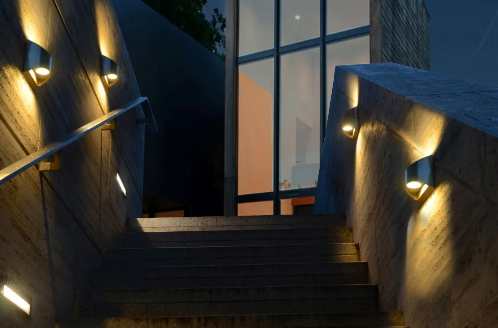 Moderne LED Außenwandleuchte aus Aluminium in Edelstahl