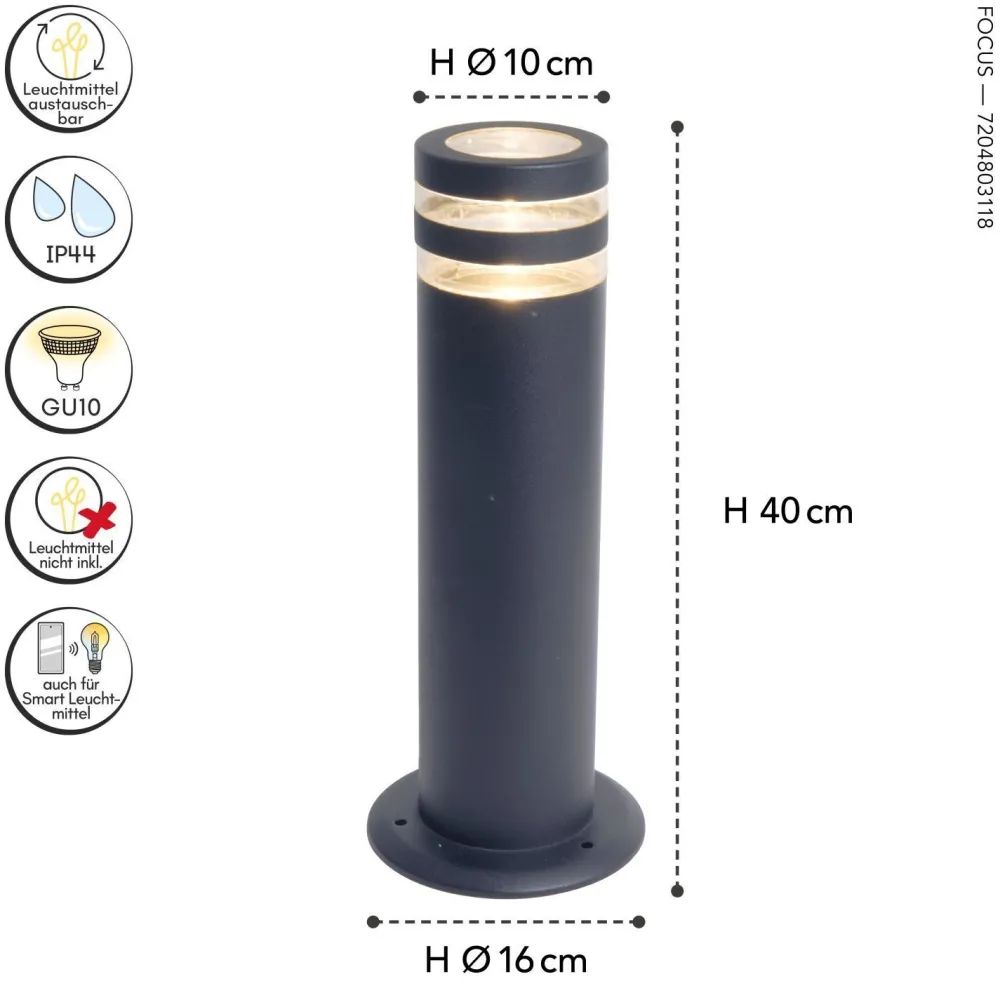 Moderne Pollerleuchte aus Aluminium in Anthrazit