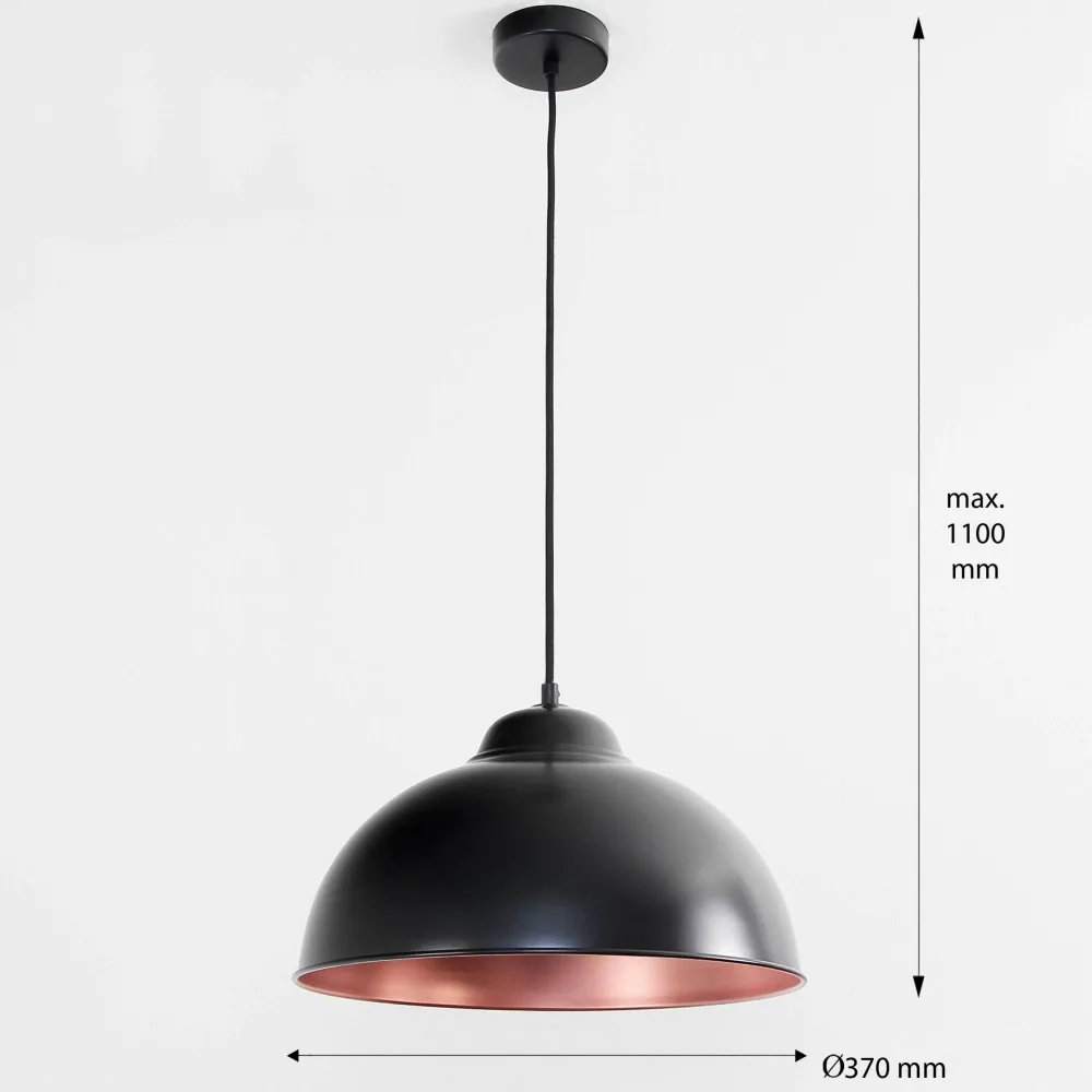 | Maße: | Breite: 370 mm | Hängetiefe: 1100 mm | Länge: 370 mm | Durchmesser Schirm: 370 mm | Durchmesser Sockel/Wandhalterung: 100 mm |