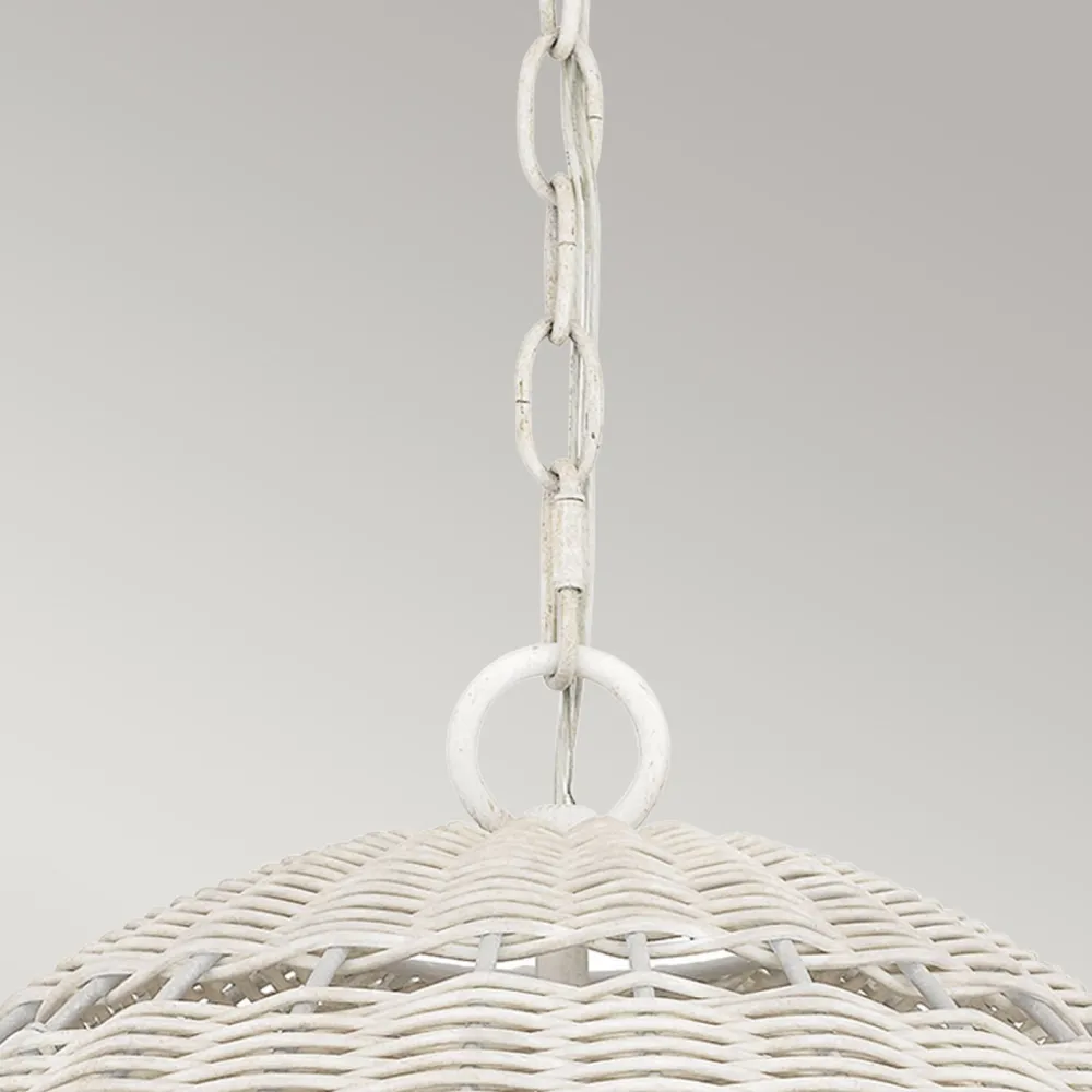 Dekorative Pendelleuchte für außen mit Kugelschirm in Weiß antik