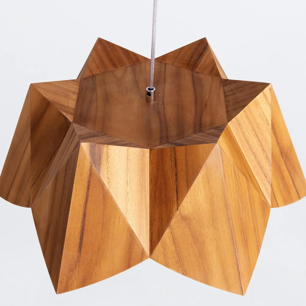 Extravagante Pendelleuchte mit geometrischem Lampenschirm aus echtem Teak Holz Furnier