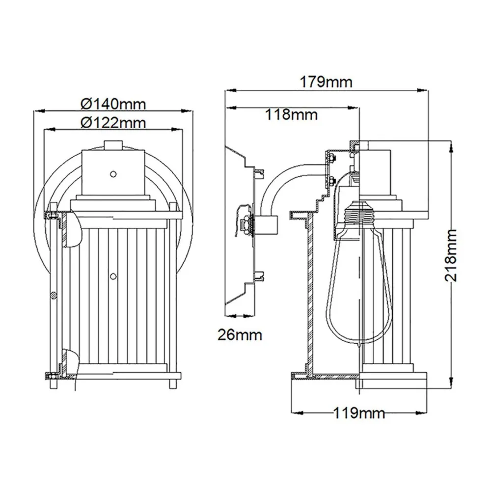 Das Design ist einer Vintage Wandlaterne nachempfunden, was die Wandlampe zu einem außergewöhnlichen Blickfang macht