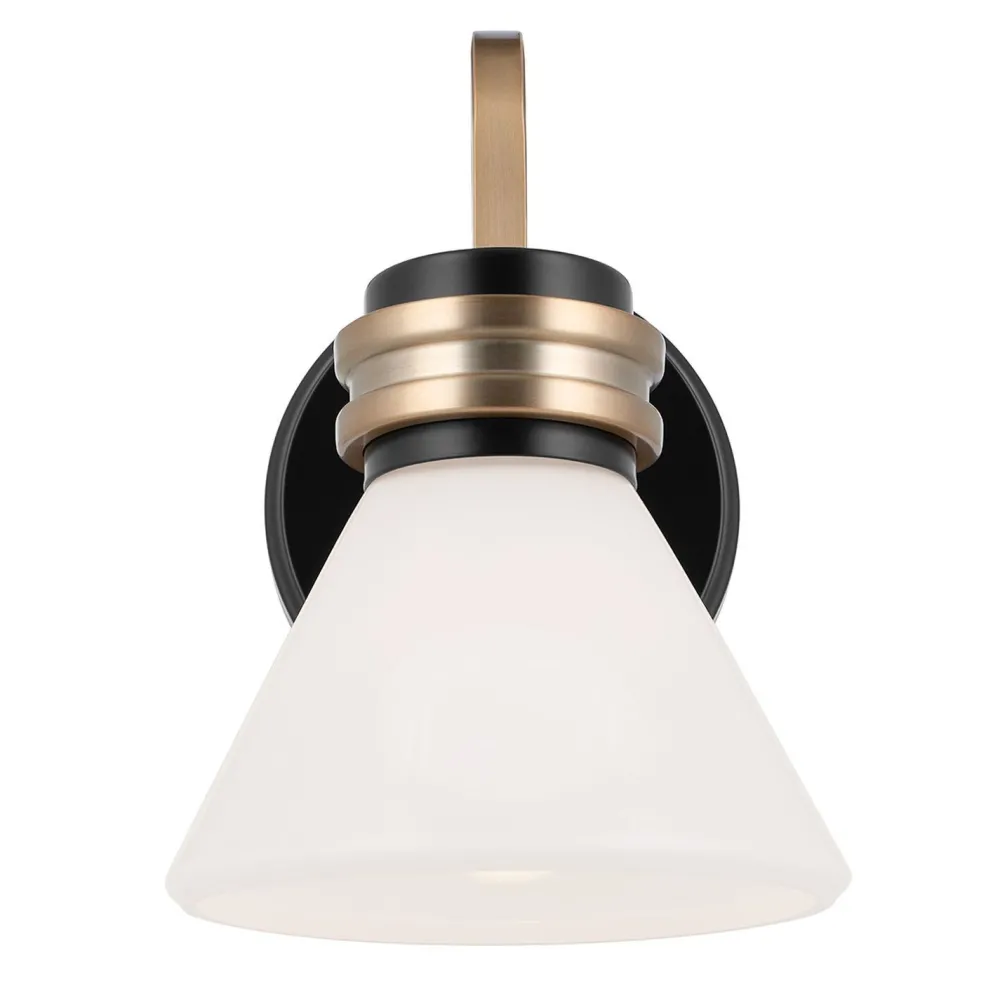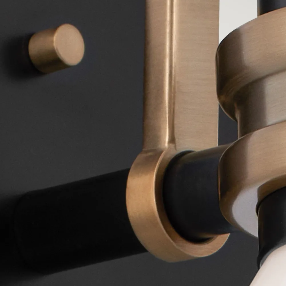 Elegante Wandleuchte für das Badezimmer in Schwarz Weiß mit Details in hellem Bronze