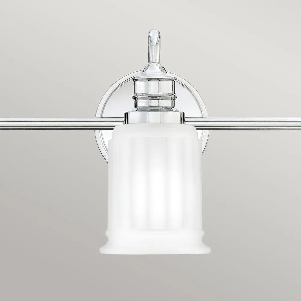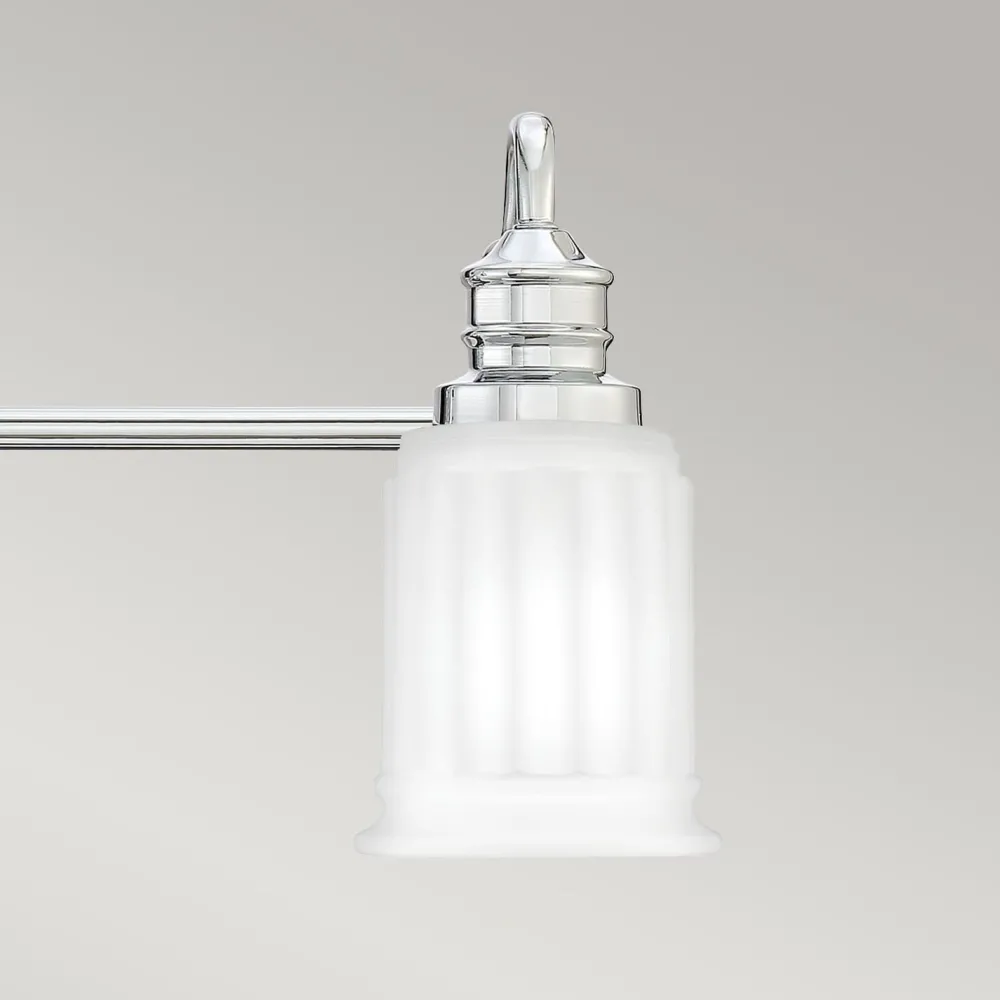 Das Licht der Badleuchte wird durch den weißen Glasschirm blendarm gestreut: perfekt neben den Spiegel