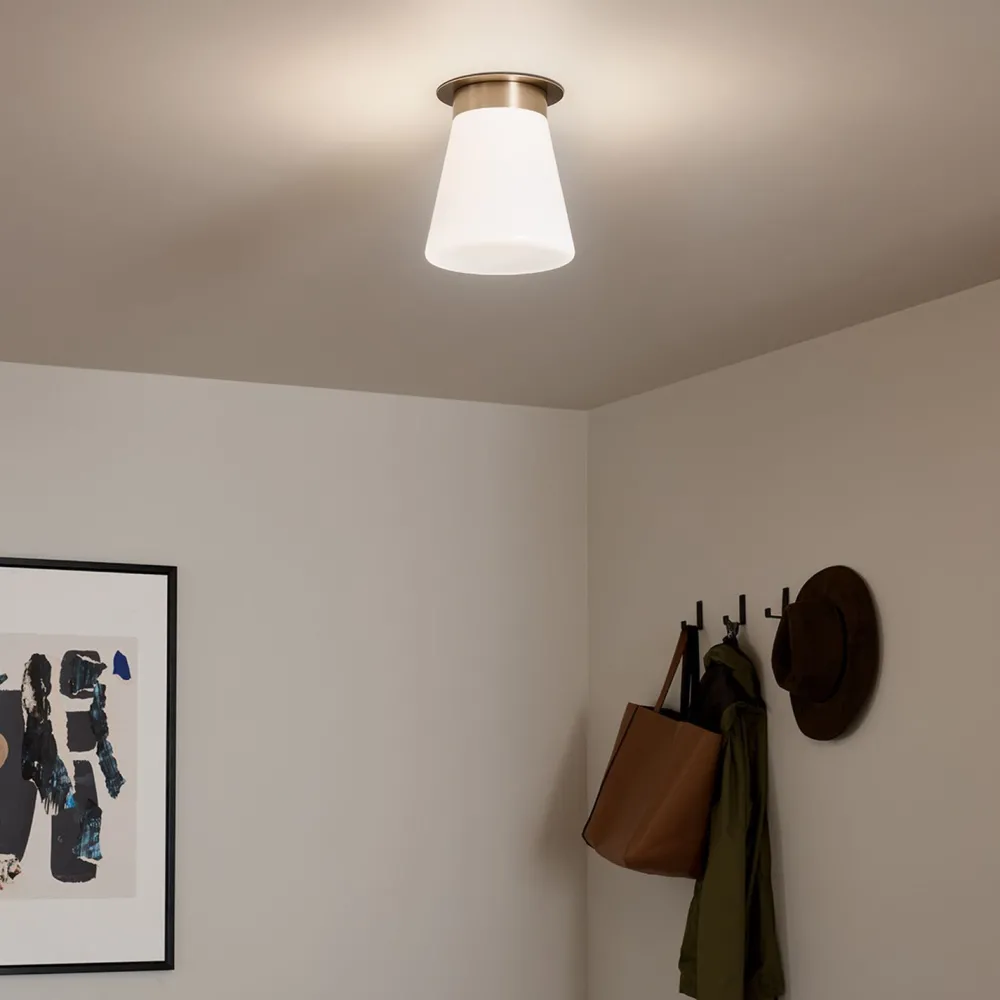 Dank ihrer geringen Größe passt die Leuchte auch in kleine Räume mit niedrigen Decken – ideal für Gäste WC, Ankleide und Eingangsbereich