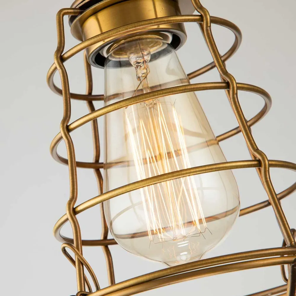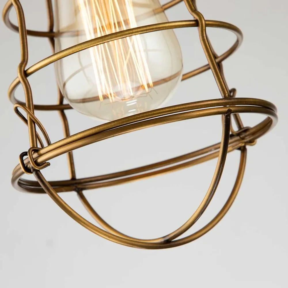 Elegante Metall Deckenlampe mit Käfig Schirm in Messing antik