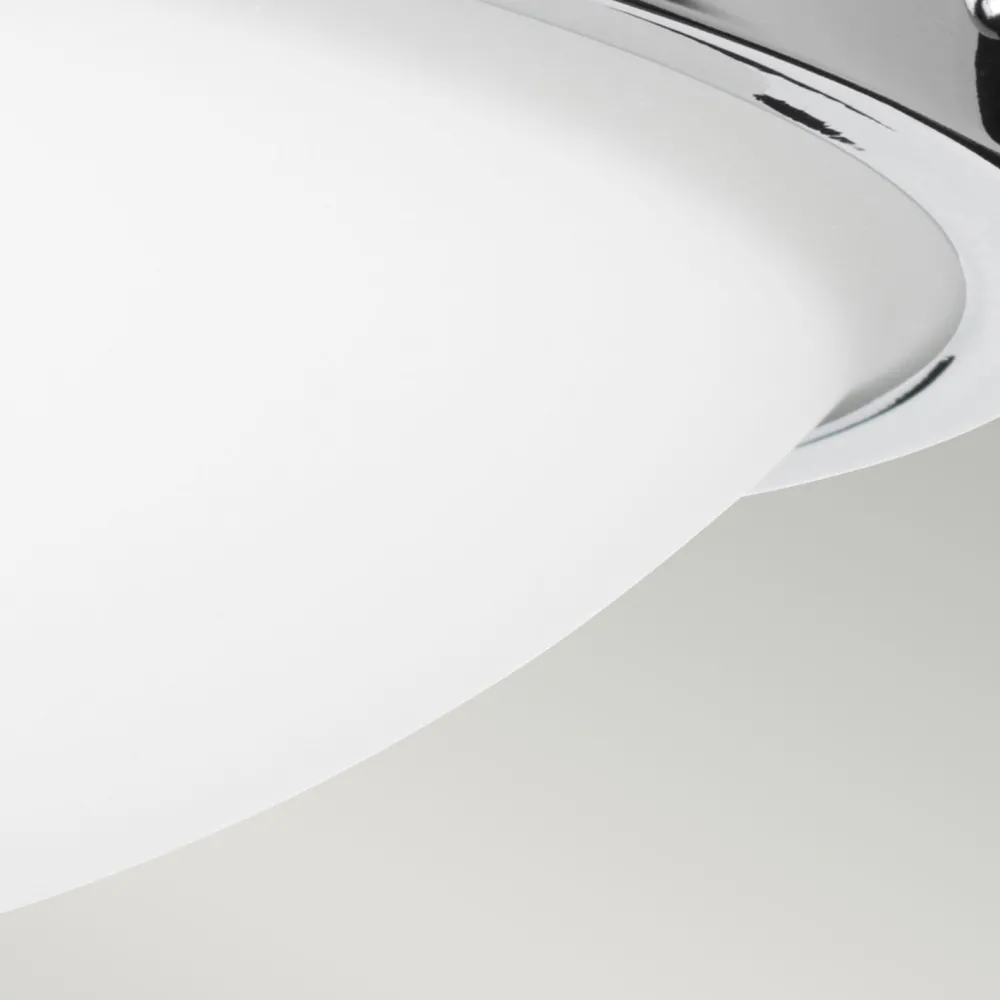 Das Licht wird durch den satinierten Glas Lampenschirm blendarm gestreut, was eine angenehme Beleuchtung erlaubt