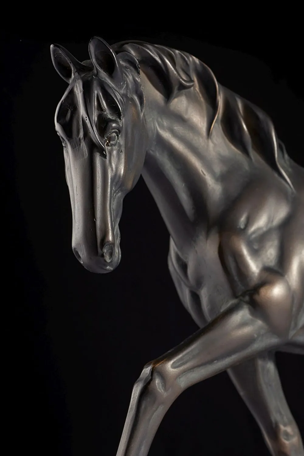 Majestätisch präsentiert sich das Pferd, als würde es zum Traben ansetzen – ein absoluter Blickfang auf Nachttisch, Beistelltisch und Konsole