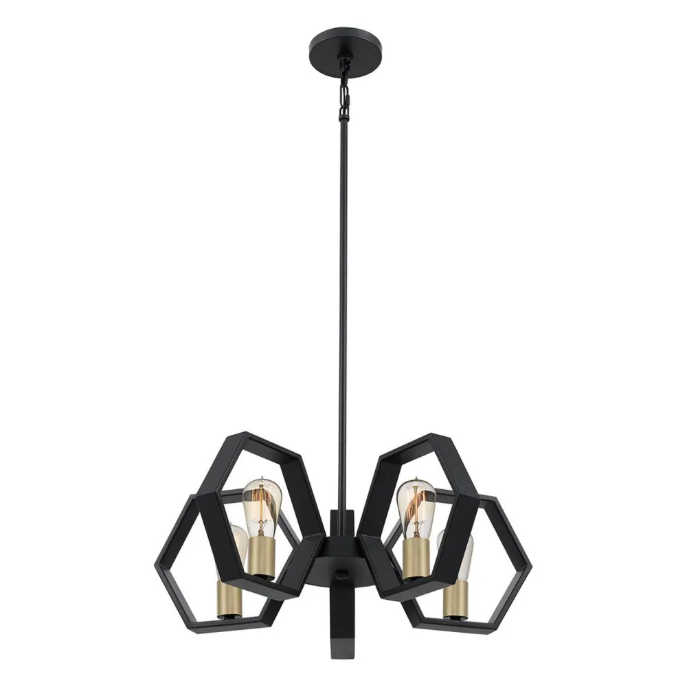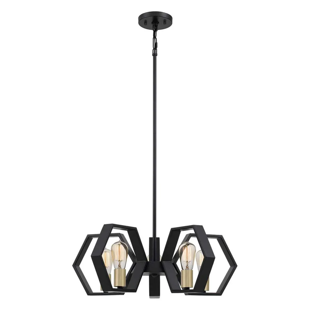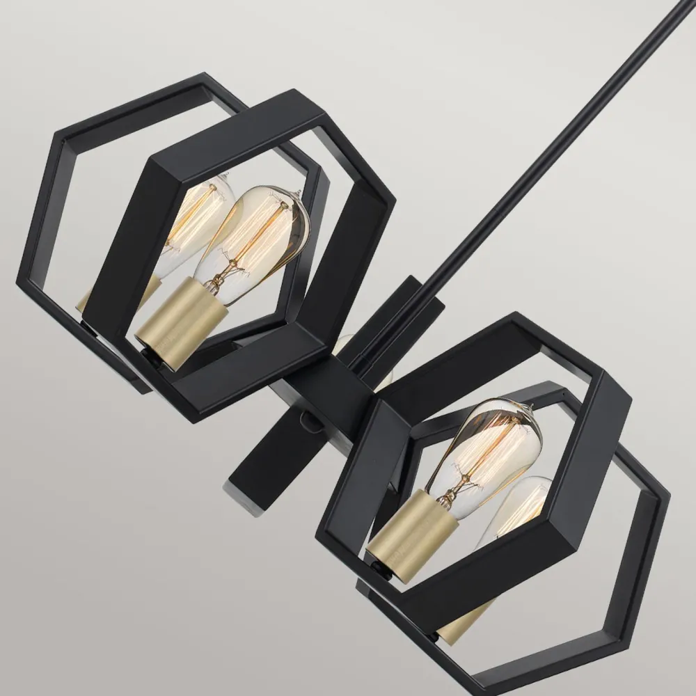 Die hexagonalen Schirme setzten einen außergewöhnlichen Akzent, der aus der langen Hängelampe einen besonderen Blickfang macht