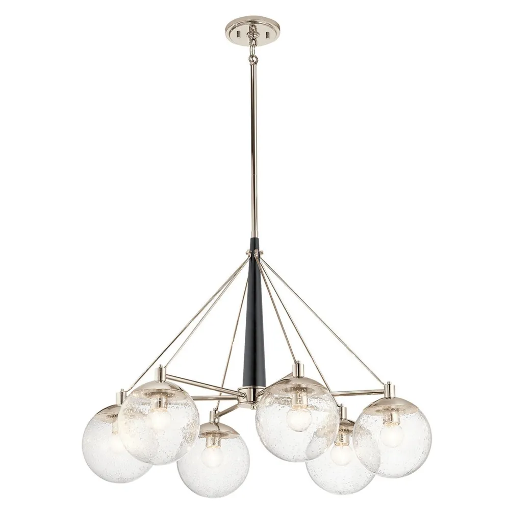 Der Kugelschirm sorgt für eine großzügige Beleuchtung und erhellt Wohnzimmer, Küche und Esszimmer