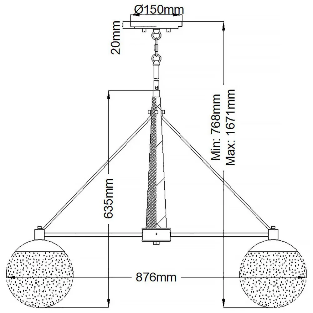 | Maße: | Breite: 876 mm | Hängetiefe: 768-1671 mm | Länge: 876 mm | Durchmesser: 876 mm | Höhe Schirm: 635 mm |