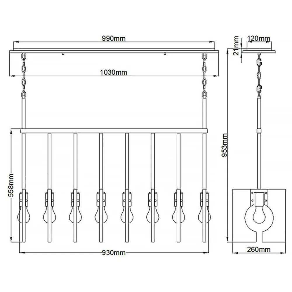 | Maße: | Breite: 260 mm | Hängetiefe: 666-1429 mm | Länge: 1030 mm | Höhe Schirm: 558 mm |