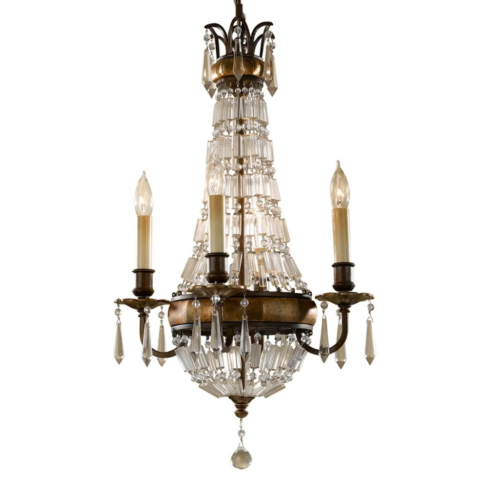 Kunstvoll geschwungene Arme und die spezielle Fassung erwecken den Eindruck eines antiken Lüsters