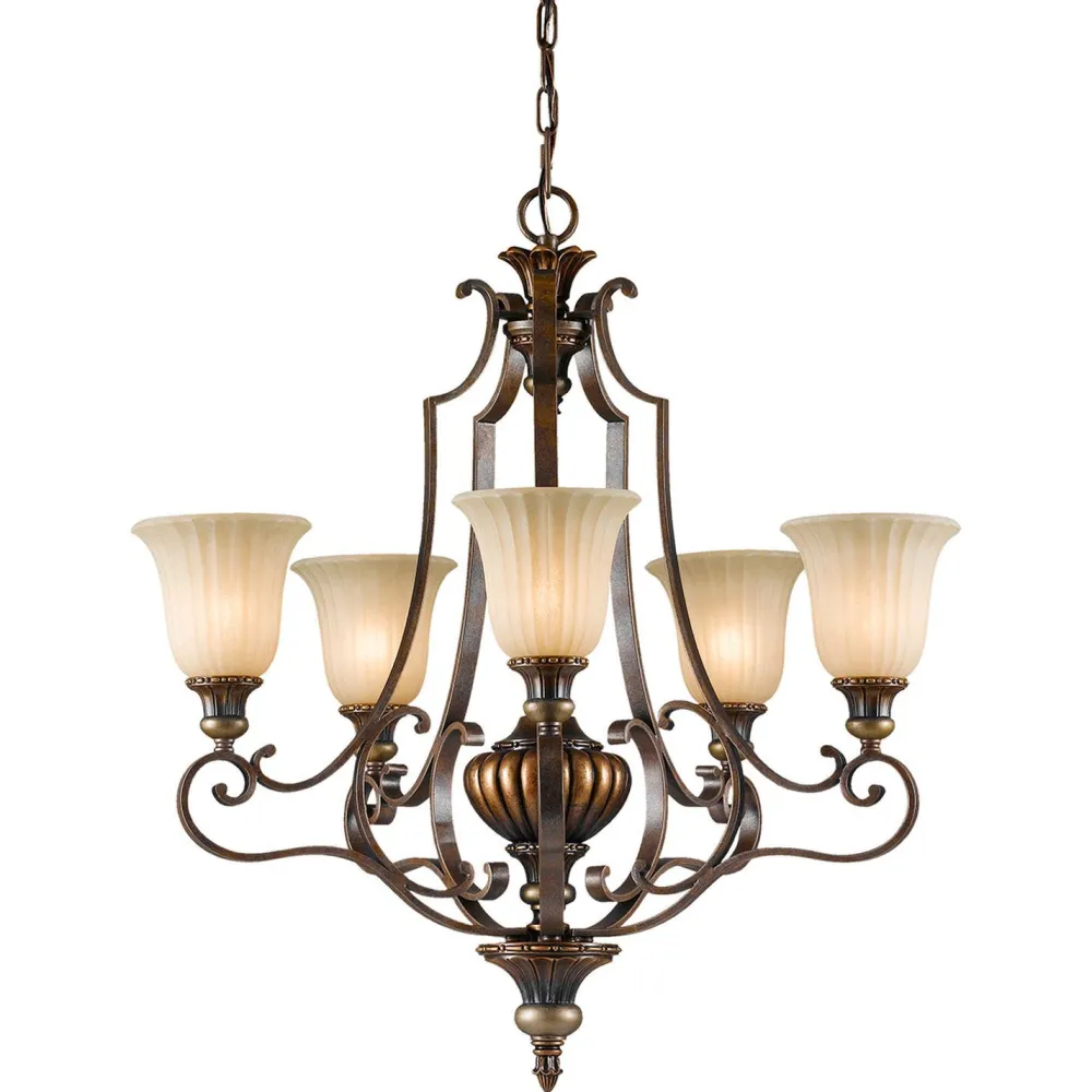 Kunstvoll geschwungene Arme bilden ein dekoratives Highlight und machen aus dem Lüster einen absoluten Blickfang