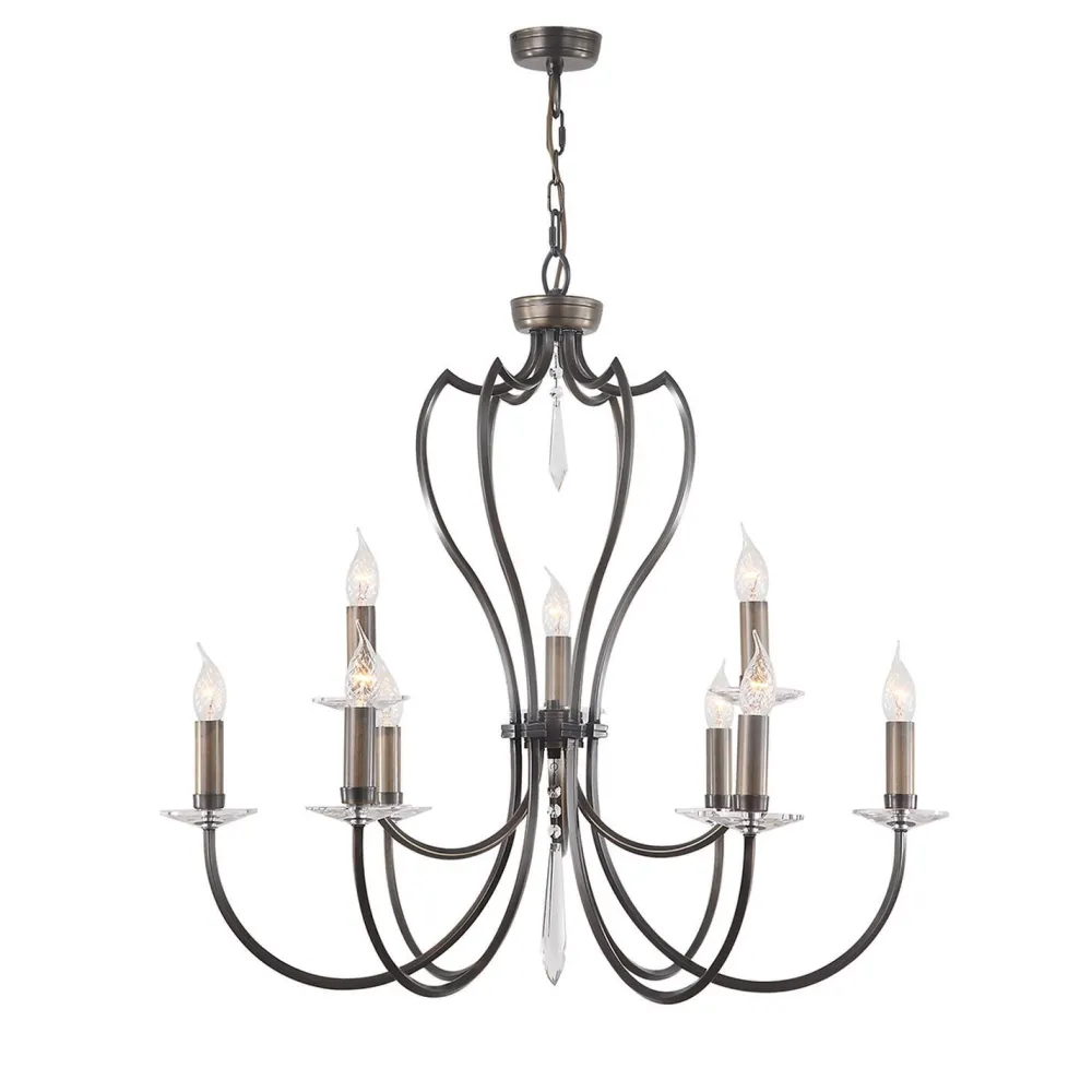 Eleganter Kronleuchter mit 9 Armen in dunklem Bronze