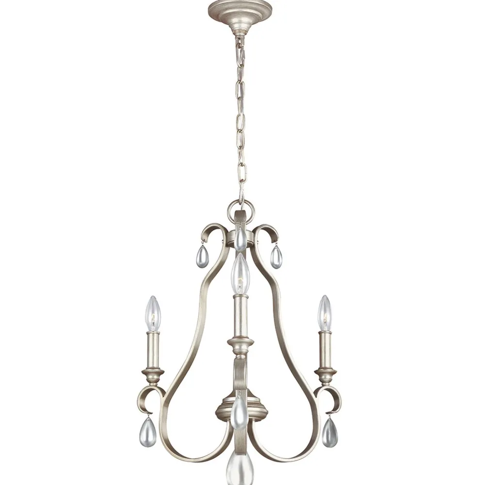 Edler Kronleuchter in Silber antik mit 3 kunstvoll geschwungenen Armem