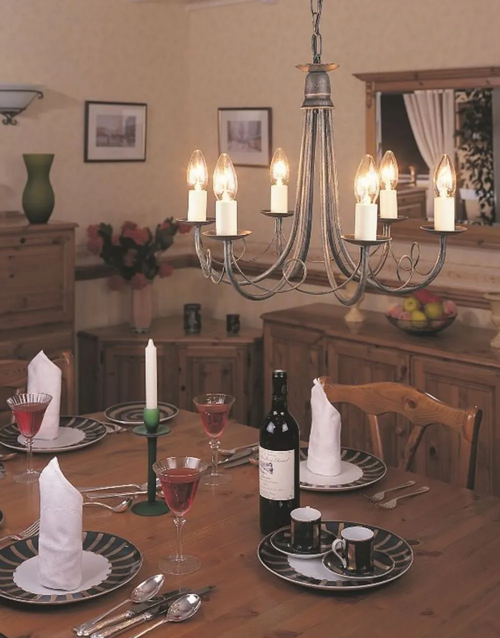 Rustikaler Kronleuchter mit 6 Armen für Wohnzimmer und Esszimmer