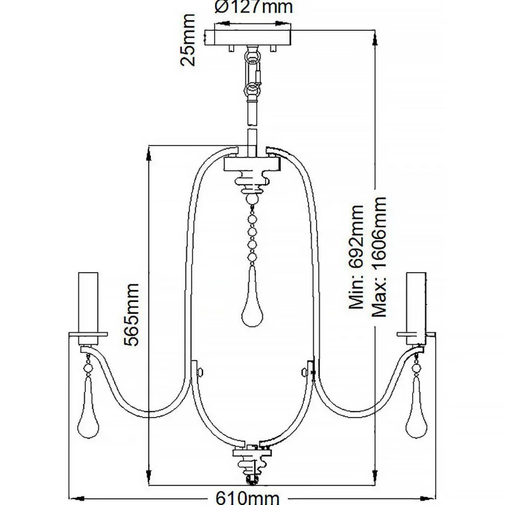 | Maße: | Breite: 610 mm | Hängetiefe: 692-1606 mm | Länge: 610 mm | Höhe Schirm: 565 mm |