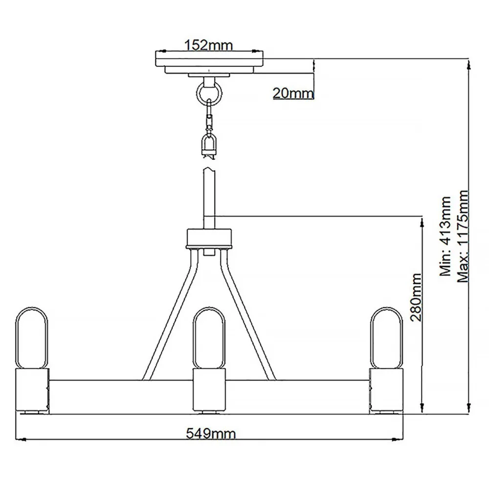 | Maße: | Breite: 549 mm | Hängetiefe: 413-1175 mm | Länge: 549 mm | Durchmesser: 549 mm | Höhe Schirm: 280 mm |