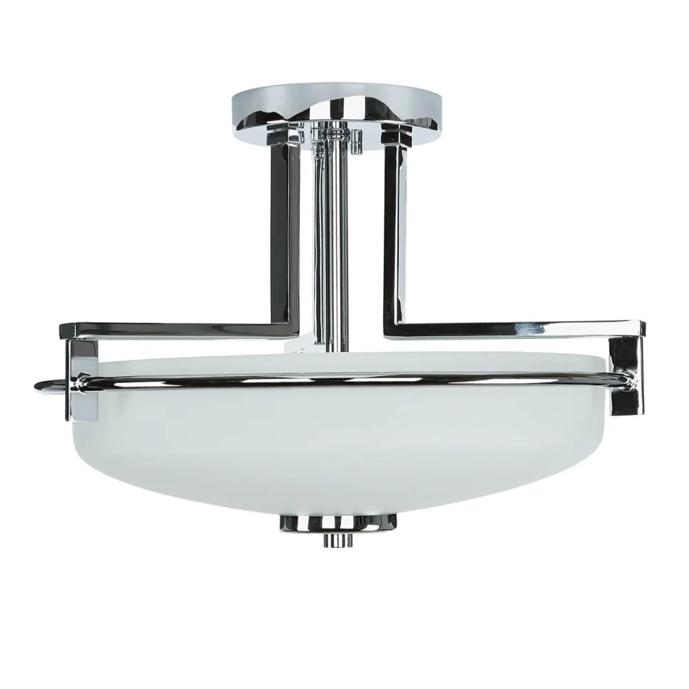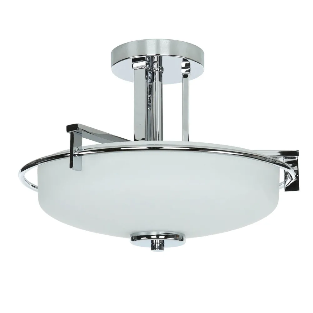 Die klassischen Farben Weiß und Chrom machen die Deckenleuchte zu einem vielseitigen Lichtspender