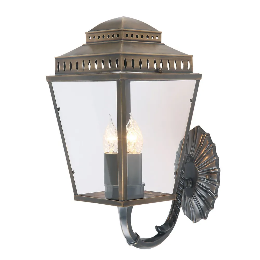 Die Wandlampe wurde in einem antiken Ton gehalten und setzt an jedem Eingang, Balkon und jeder Fassade dekorative Akzente
