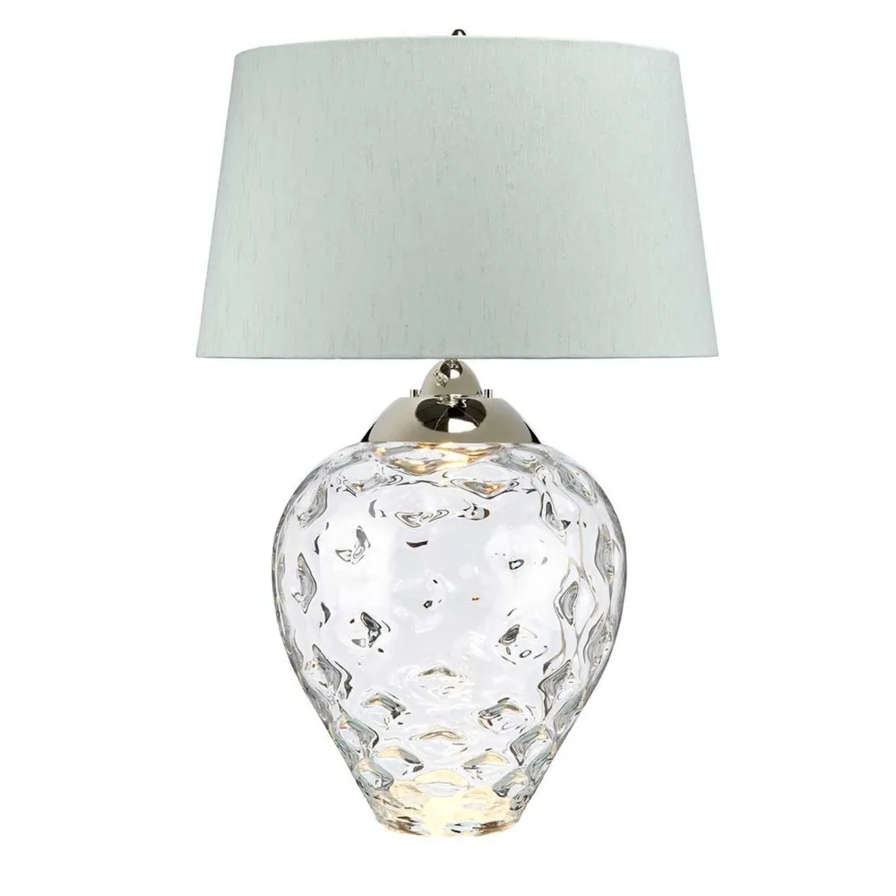 Stilvolle Tischleuchte mit beleuchtetem Sockel aus klarem Glas