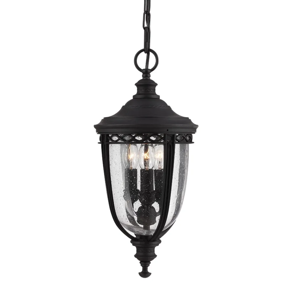 Reich verzierte Hängelampe für Außen in edlem Bronze
