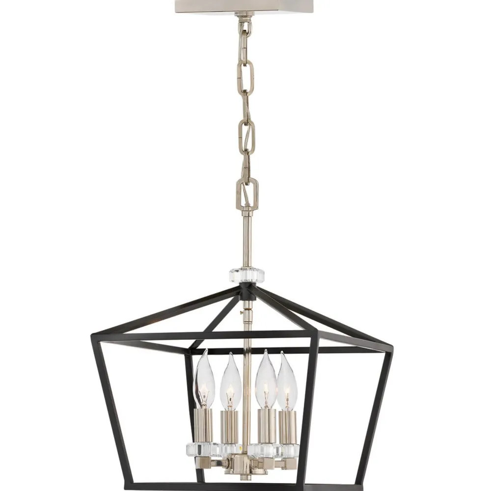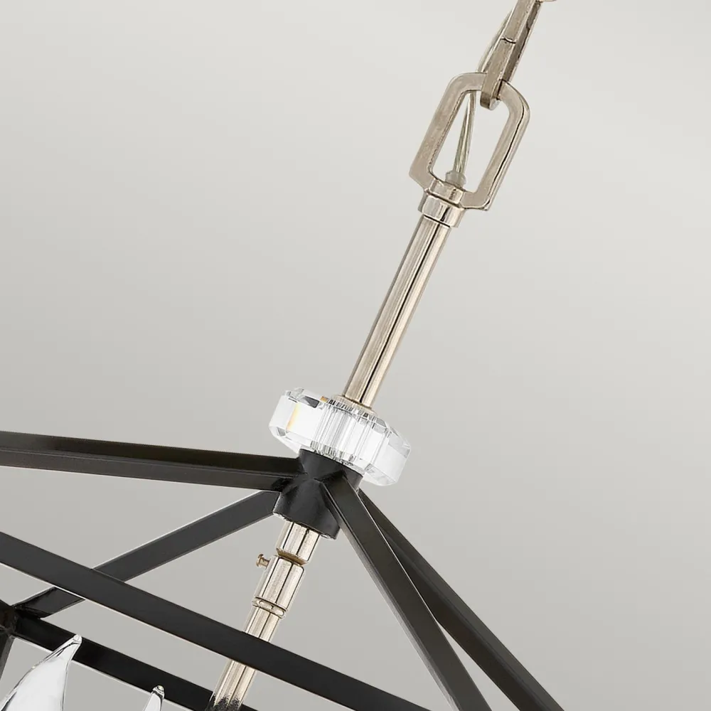 Offene Pendelleuchte aus Metall in Schwarz und Nickel