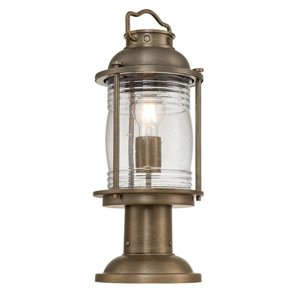 Kleine Vintage Sockelleuchte für Garten und Terrasse in elegantem Bronze aus robustem Aluminium und kunstvollem Glas