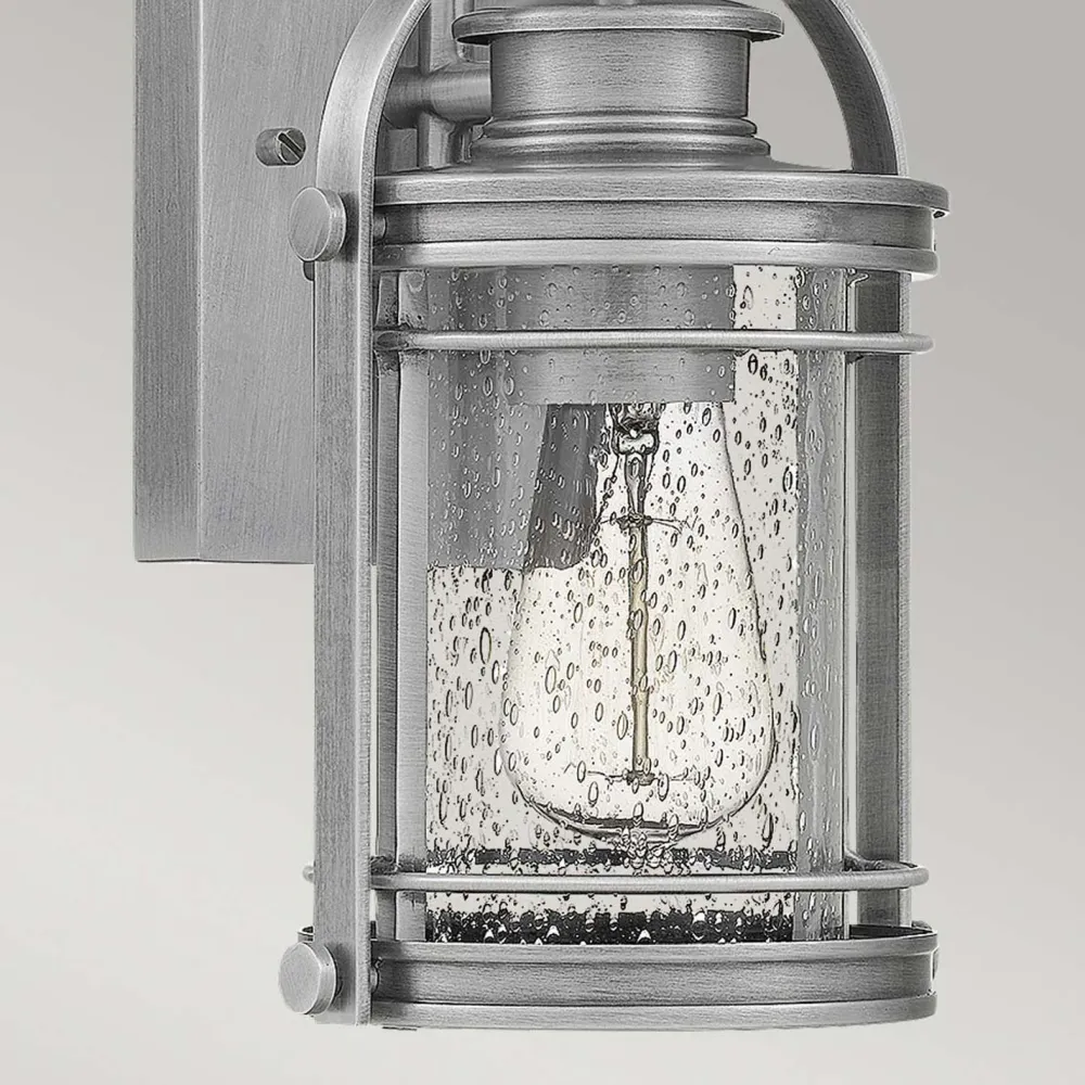 Kleine Vintage Außenleuchte für die Wand aus robustem Aluminium und kunstvollem Glas