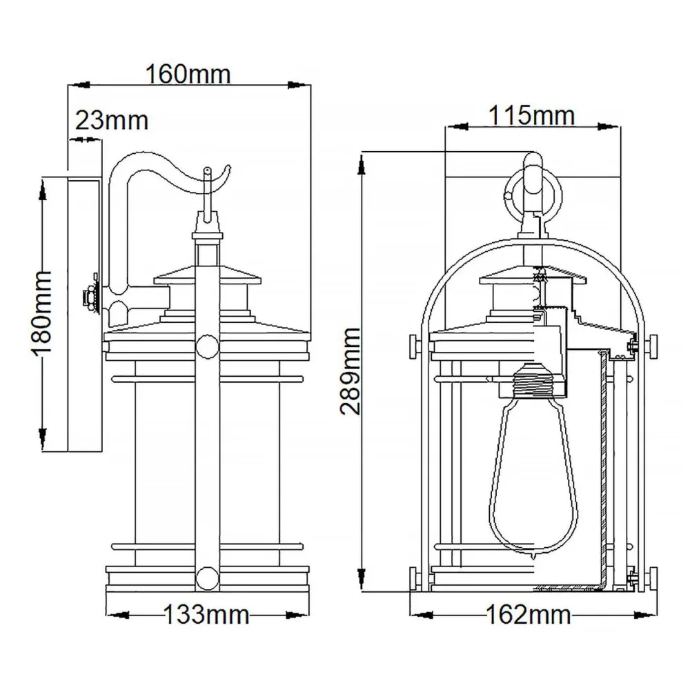 Die außen Wandleuchte besticht durch die eleganten Details und die gebürstete Farbe, die den Eindruck einer antiken Wandlaterne erwecken – ein dekorativer Blickfang an jeder Fassade