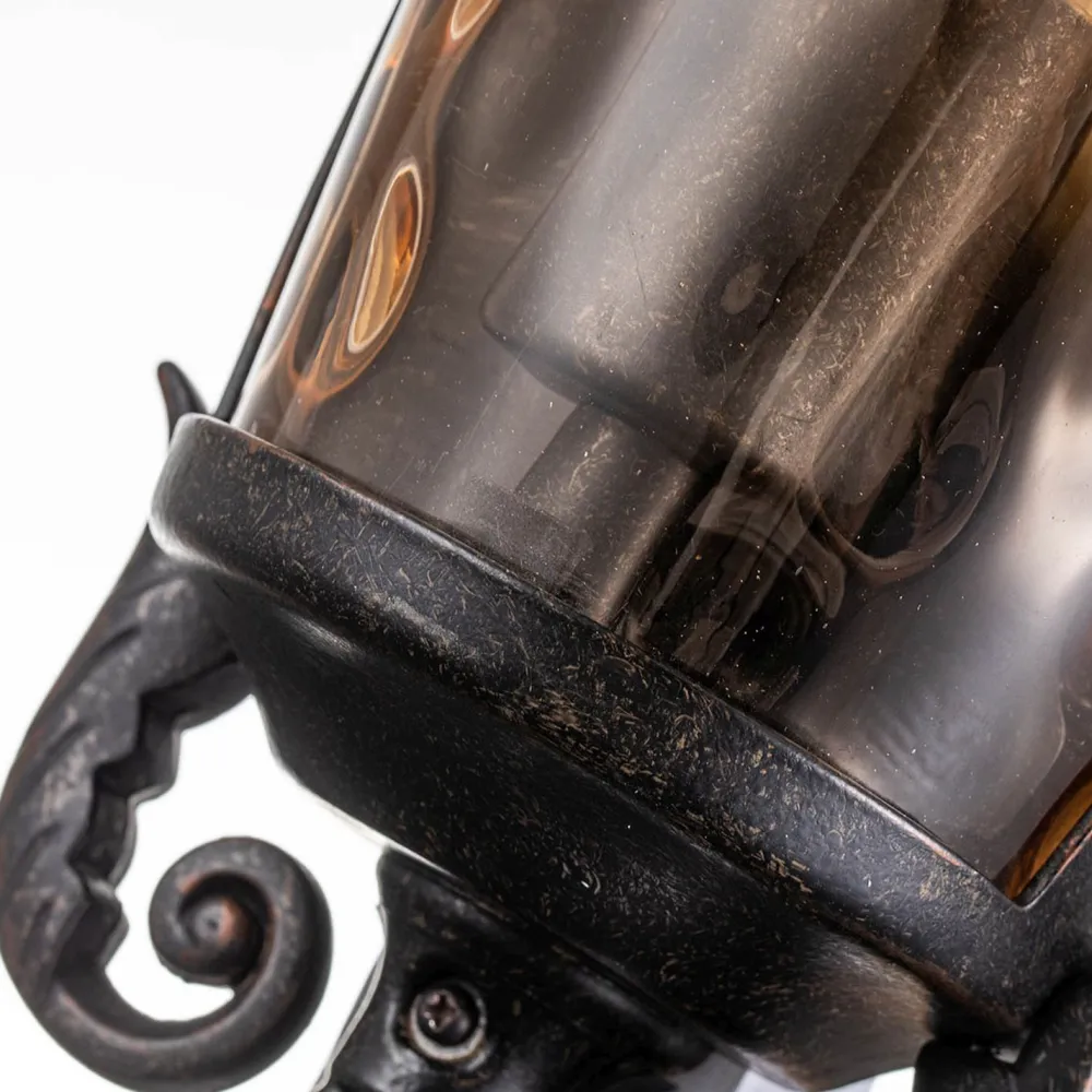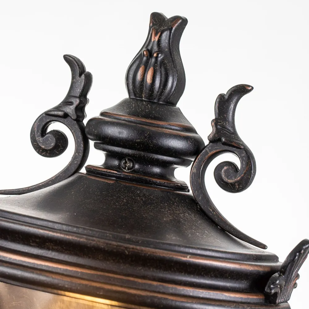Fein gearbeitete Ornamente dekorieren die Außenlampe und verleihen ihr ein majestätisches Aussehen