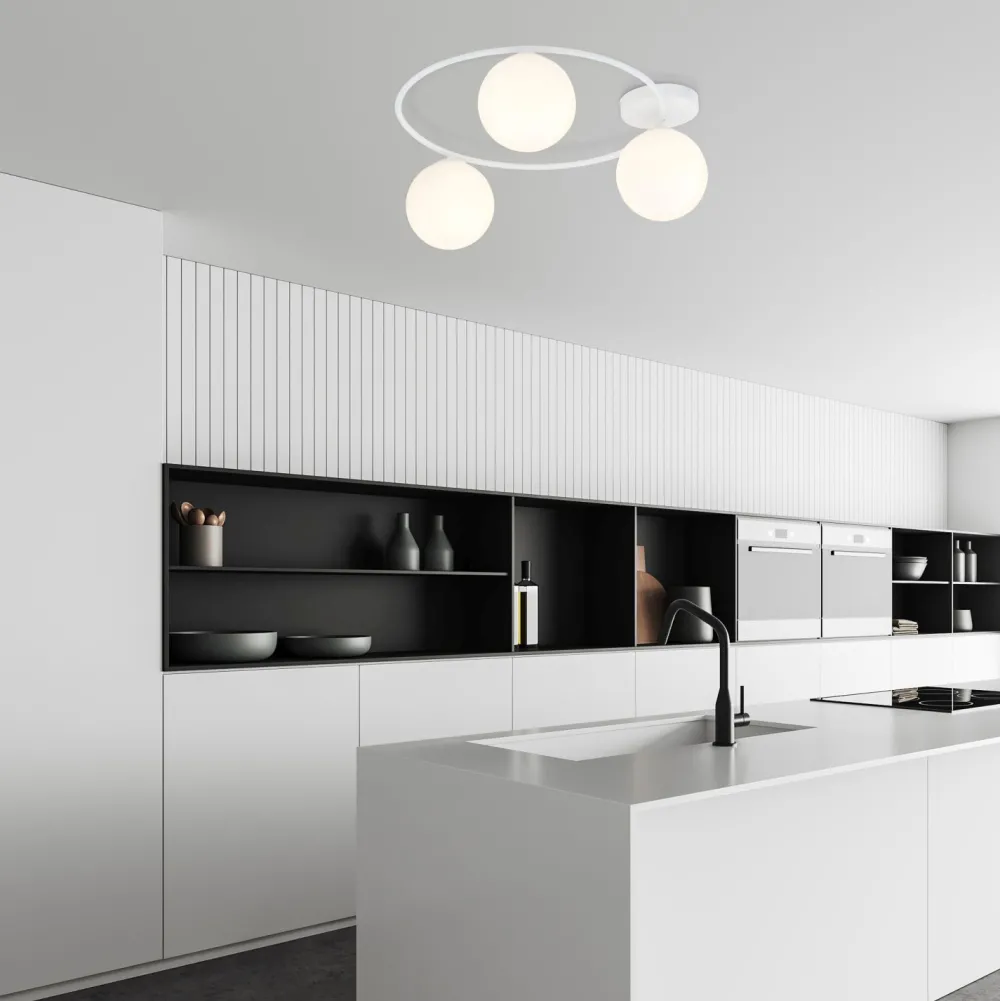 Dank ihrer geringen Höhe passt die die Deckenlampe auch in Räume mit niedrigen Decken