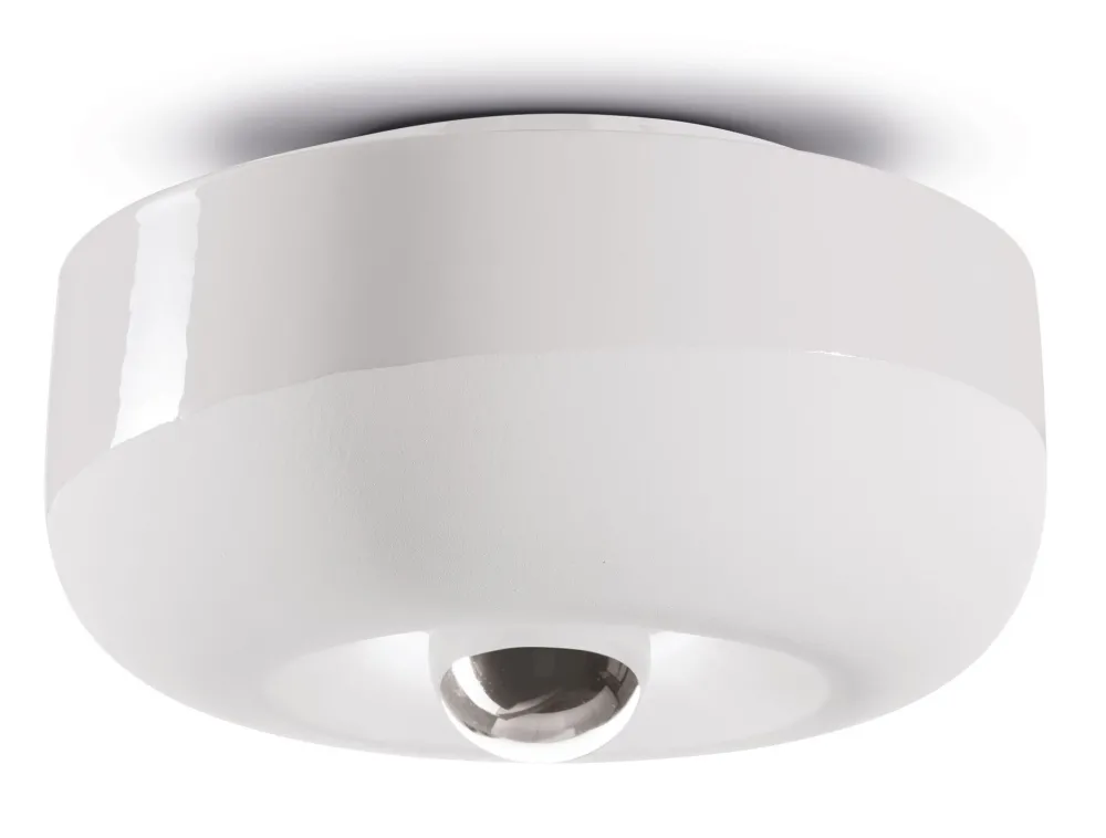 Die Kombination aus glänzend und matt verleiht der kleinen Deckenlampe einen außergewöhnlichen Charakter, der in Wohnzimmer, Küche und Flur zu einem dekorativen Blickfang wird