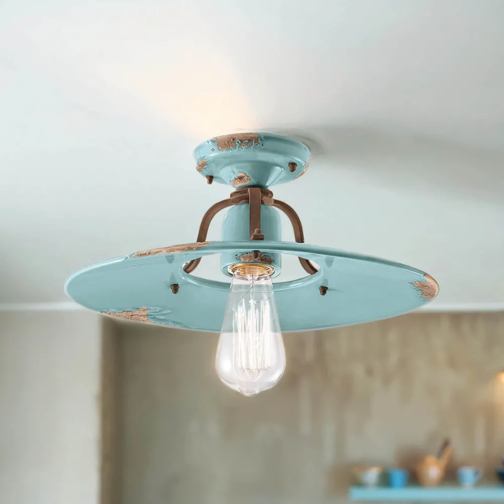 Kleine Deckenleuchte aus Keramik und Metall in hellem Blau