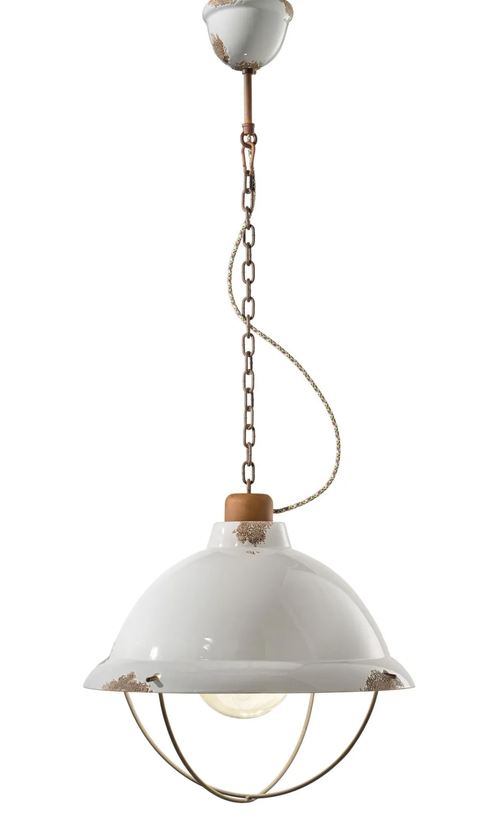 Dekorative Pendelleuchte aus Keramik und Metall im Industrial Design