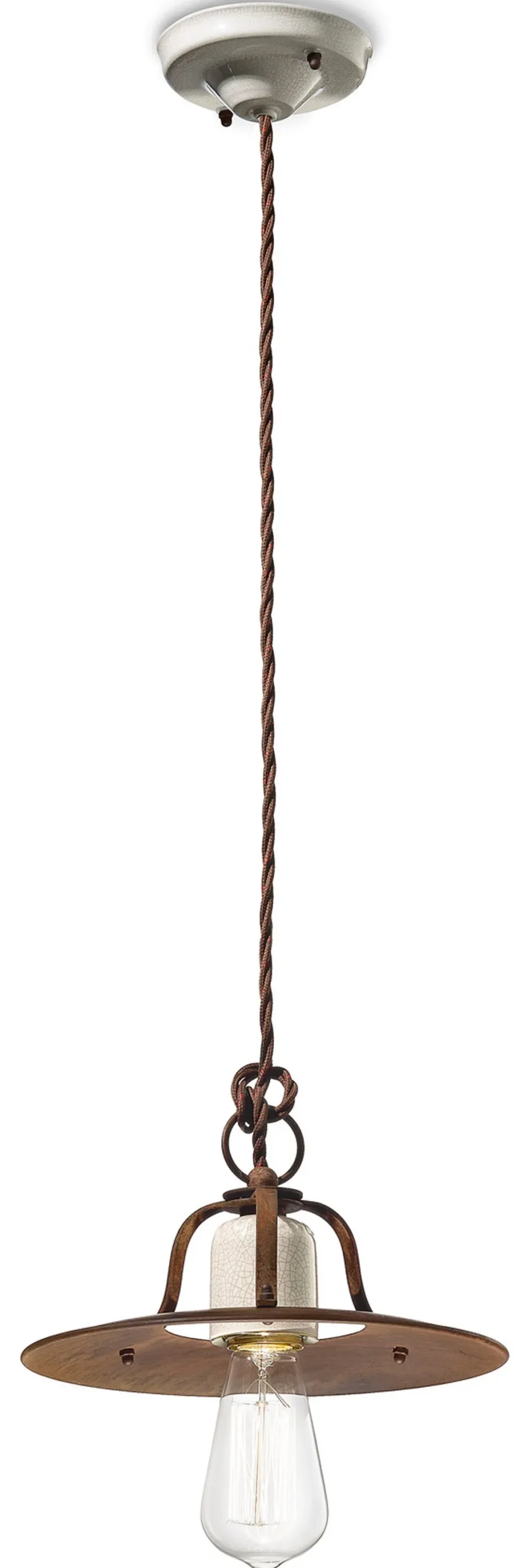 Kleine Pendelleuchte aus Keramik und Metall im Industrial Design