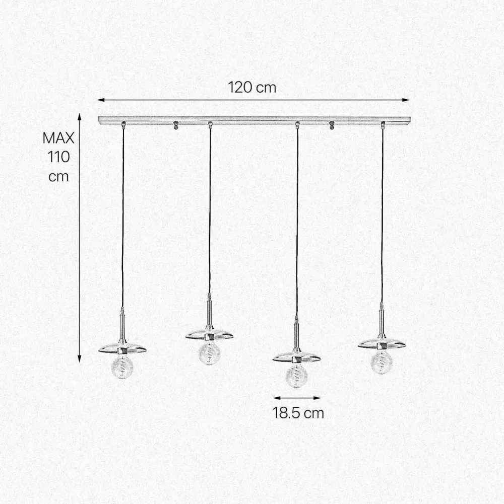 | Maße: | Breite: 1200 mm | Hängetiefe: 700-1100 mm | Durchmesser Schirm: 185 mm | Durchmesser Sockel/Wandhalterung: 1200 mm |