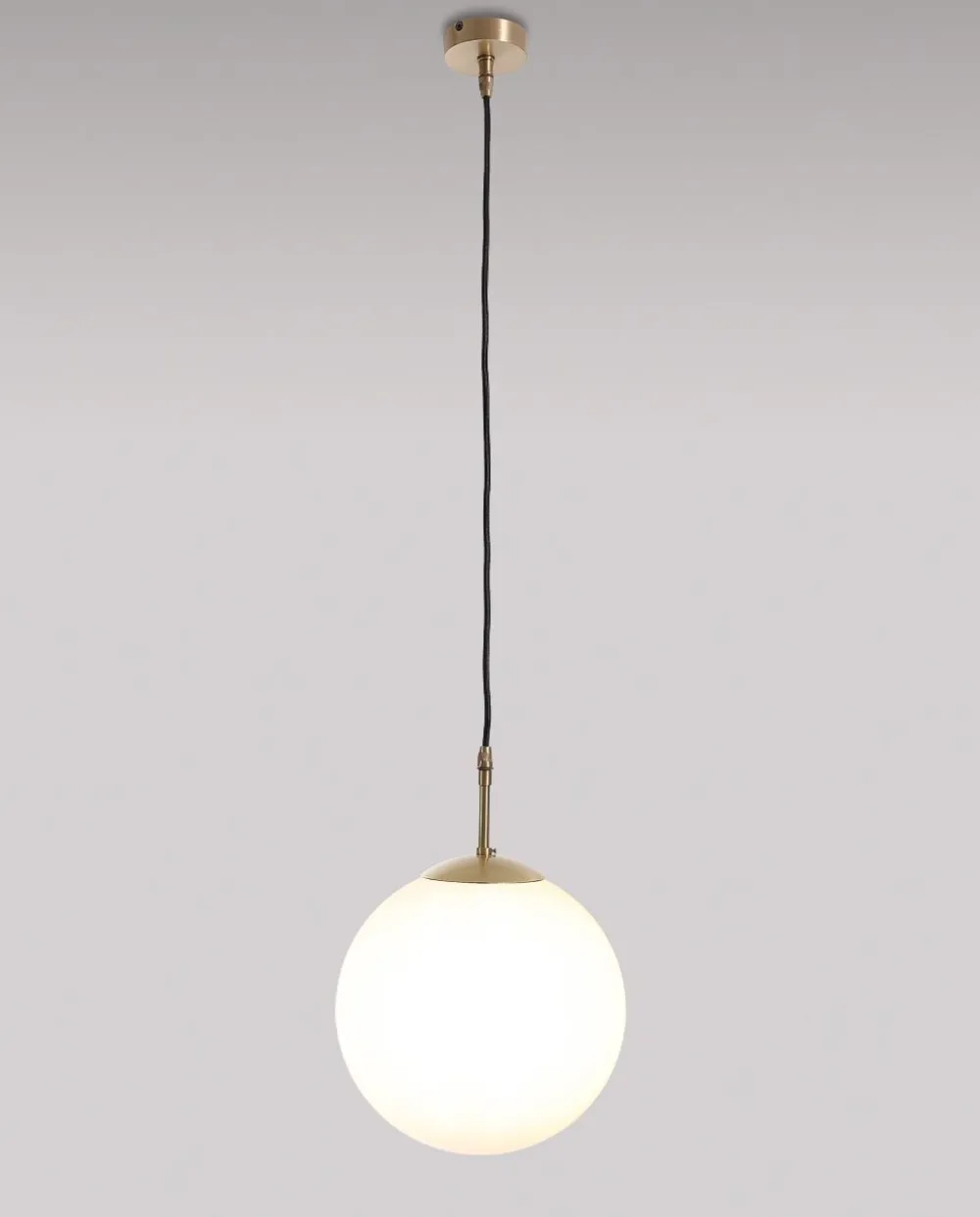 Elegante Pendelleuchte aus massivem Messing mit Glas Kugel Schirm