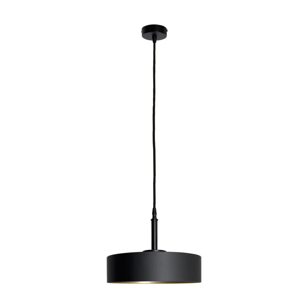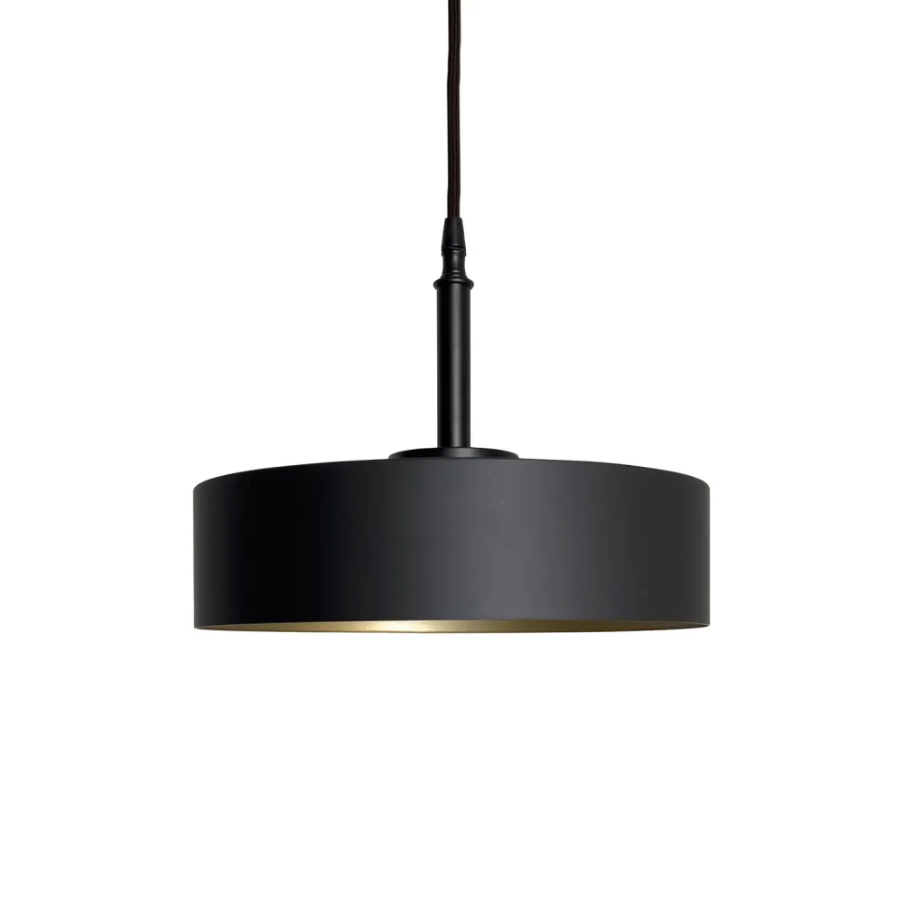 Runde Pendelleuchte aus massivem Messing in Schwarz und Gold