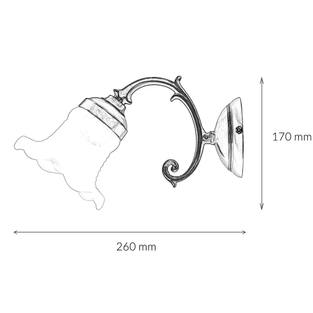 | Maße: | Breite: 128 mm | Höhe: 170 mm | Tiefe: 260 mm | Durchmesser Schirm: 128 mm | Durchmesser Sockel/Wandhalterung: 100 mm |