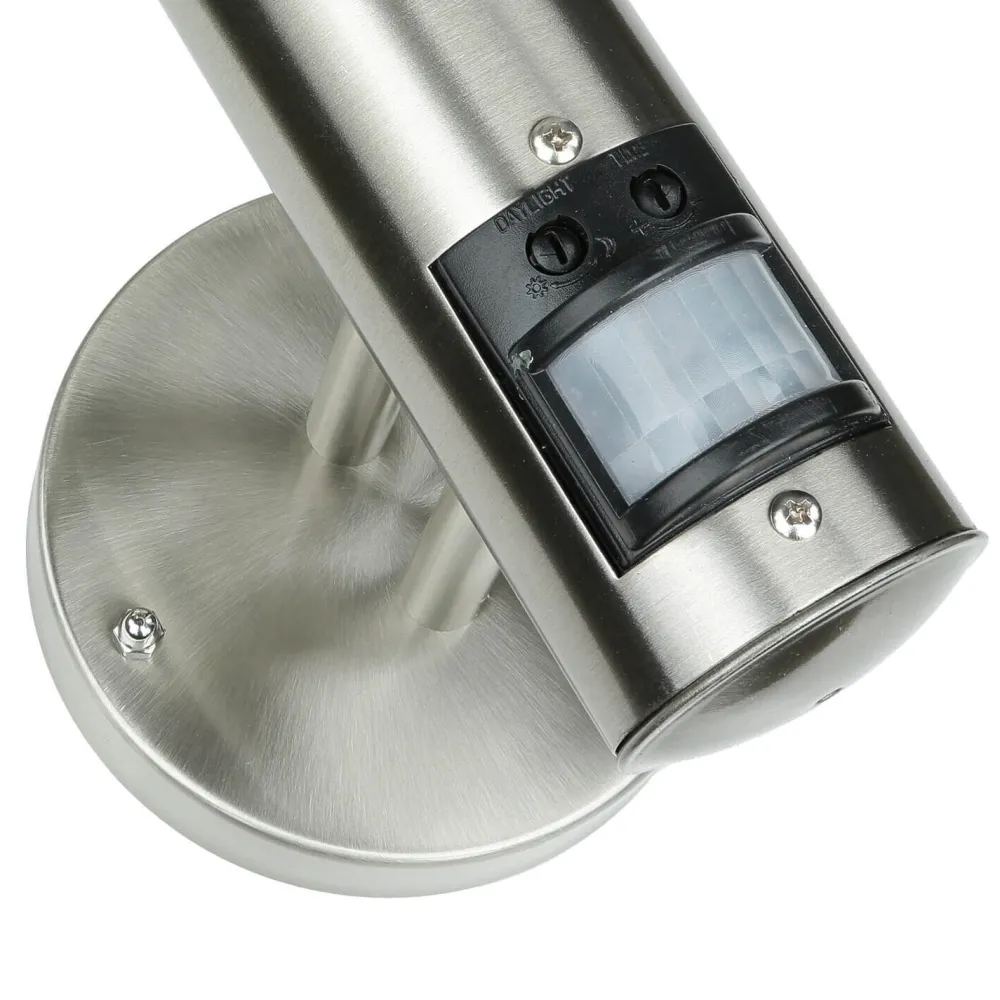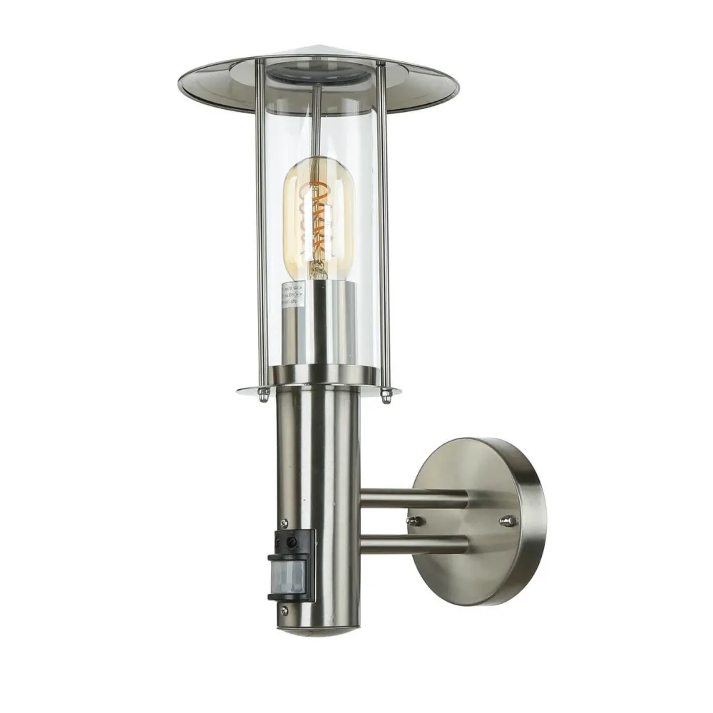 Maritime Außenleuchte mit Bewegungsmelder aus robustem Edelstahl und Glas