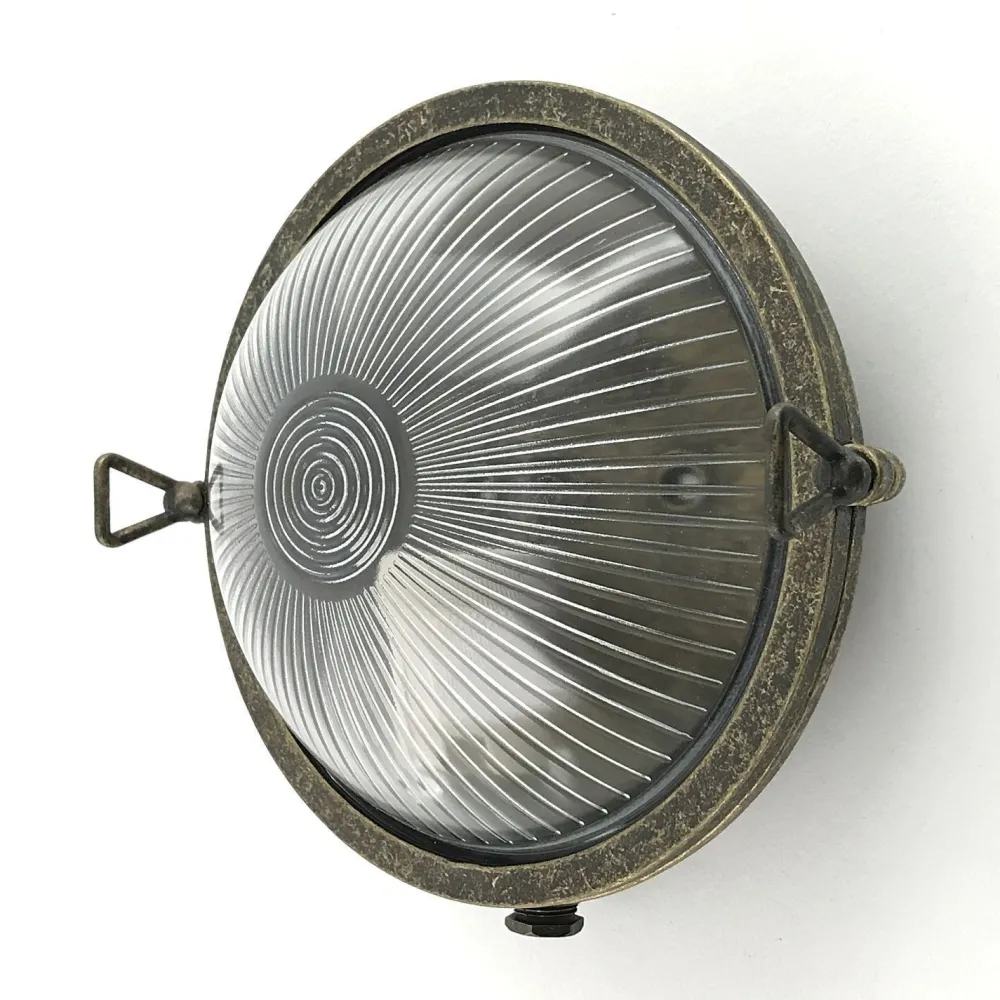 Maritime Außenwandleuchte aus massivem Messing und satiniertem Glas in verwittertem Messing: ideal als Haustür Lampe, Terrassenlampe, Balkon Lampe, Carport Beleuchtung und Garagenlampe