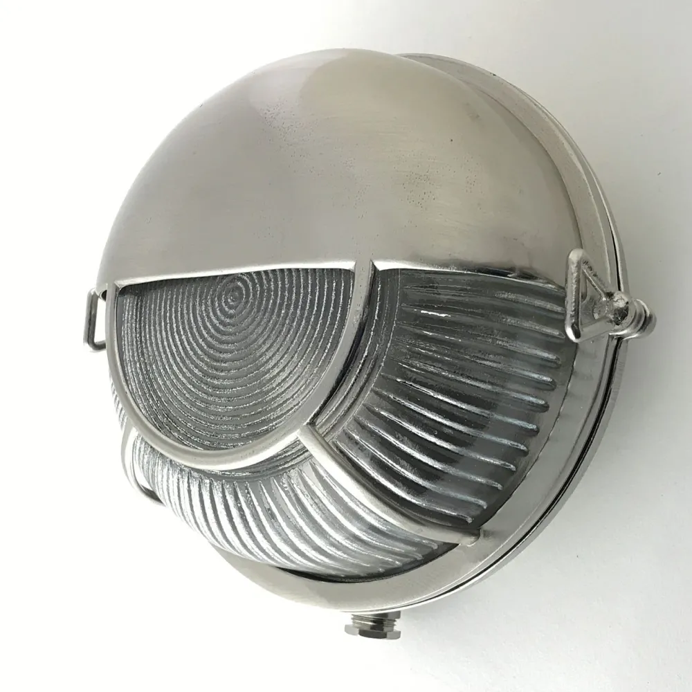 Maritime Außenwandleuchte aus massivem Messing und satiniertem Glas in Nickel matt: ideal als Haustür Lampe, Terrassenbeleuchtung, Balkonlampe, Carport Beleuchtung und Garagenlampe