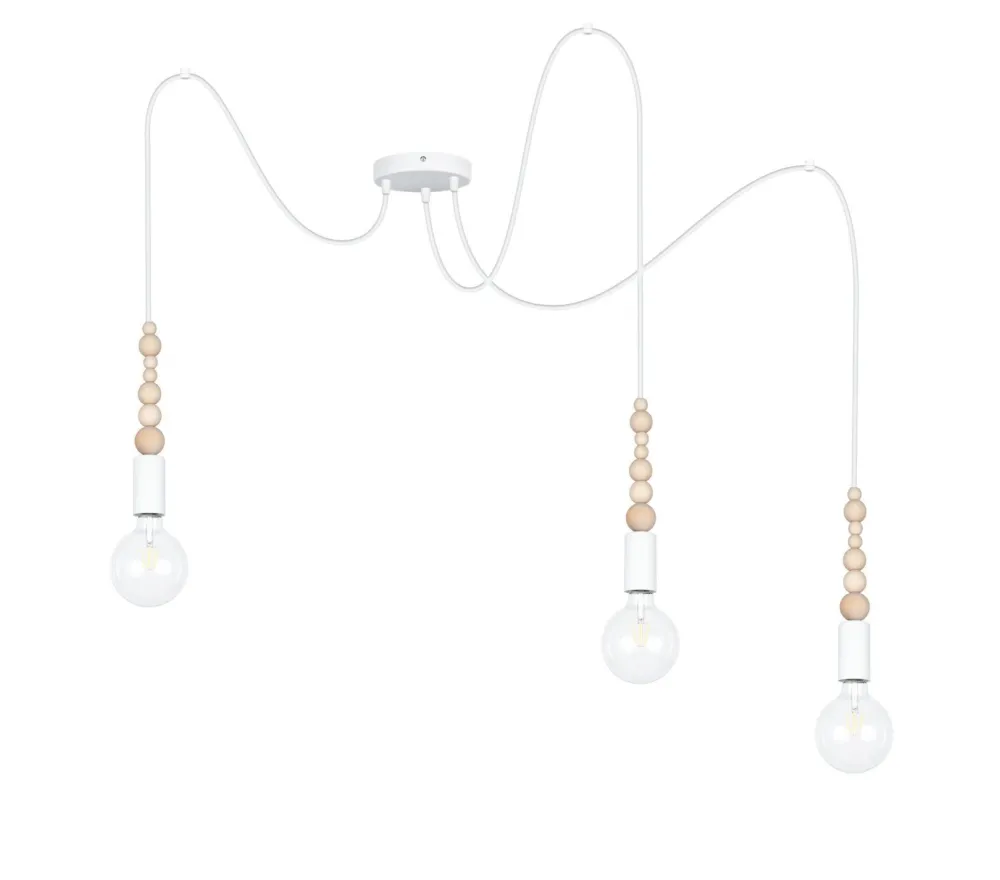 Spider Pendelleuchte aus Metall und Holz in Weiß