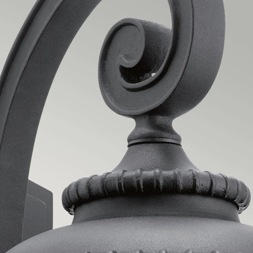 Fein gearbeitete Ornamente dekorieren die Außenlampe und verleihen ihr ein majestätisches Aussehen