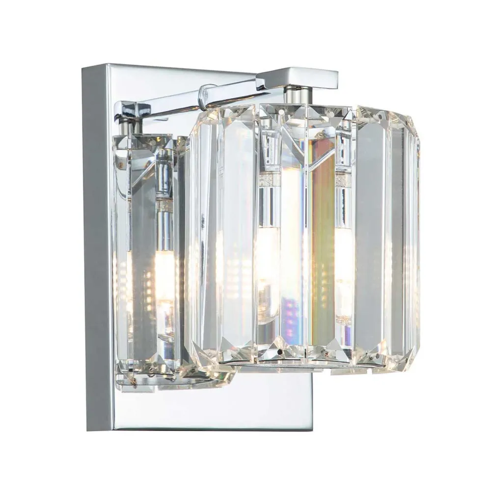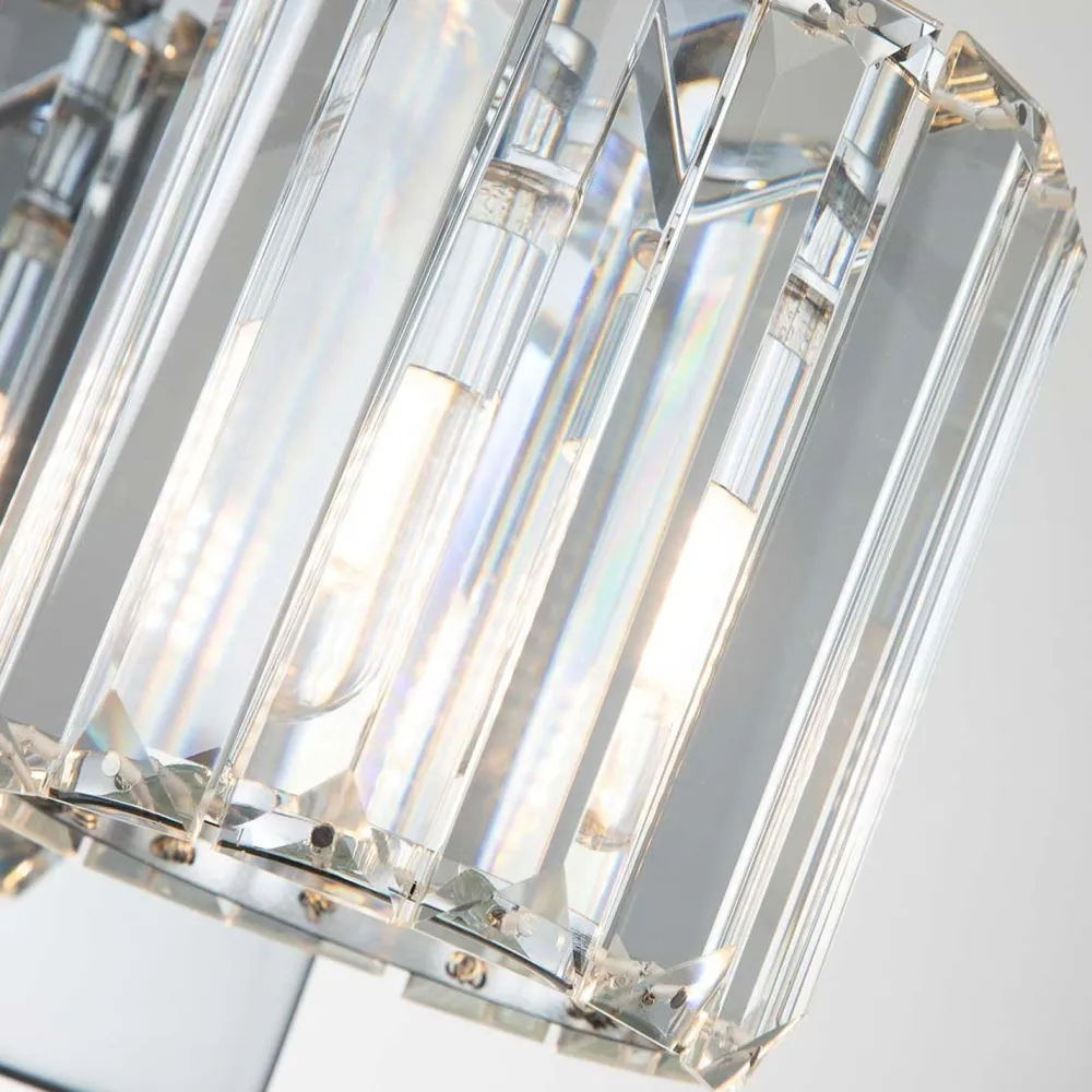Funkelnde Art Déco Wandlampe mit Kristall Lampenschirm und beiliegendem LED Leuchtmittel für das Badezimmer