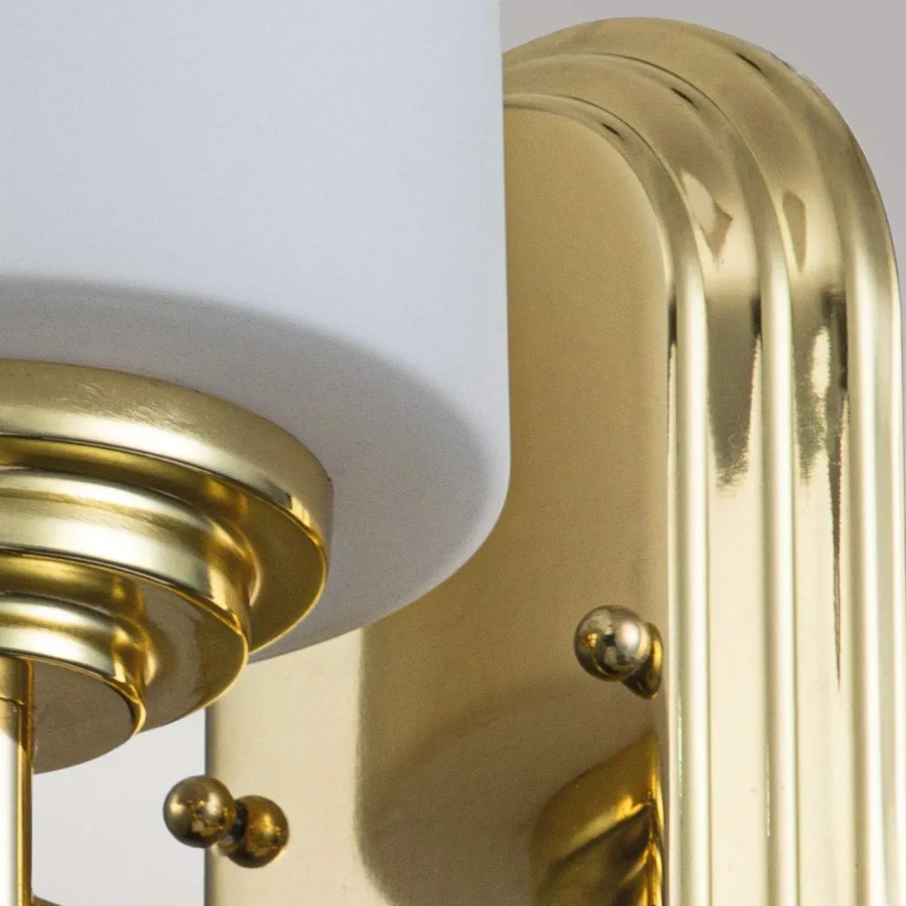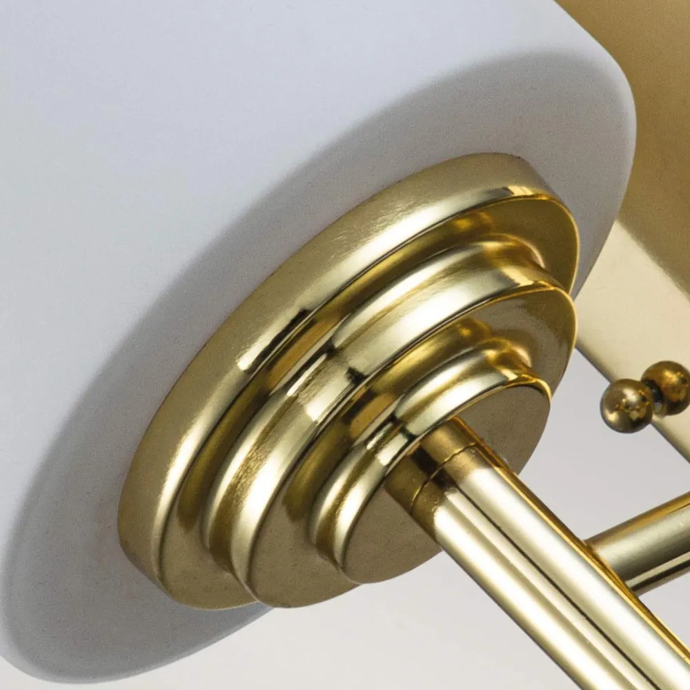 Das Licht der Badleuchte wird durch den weißen Glasschirm blendarm gestreut: perfekt neben den Spiegel