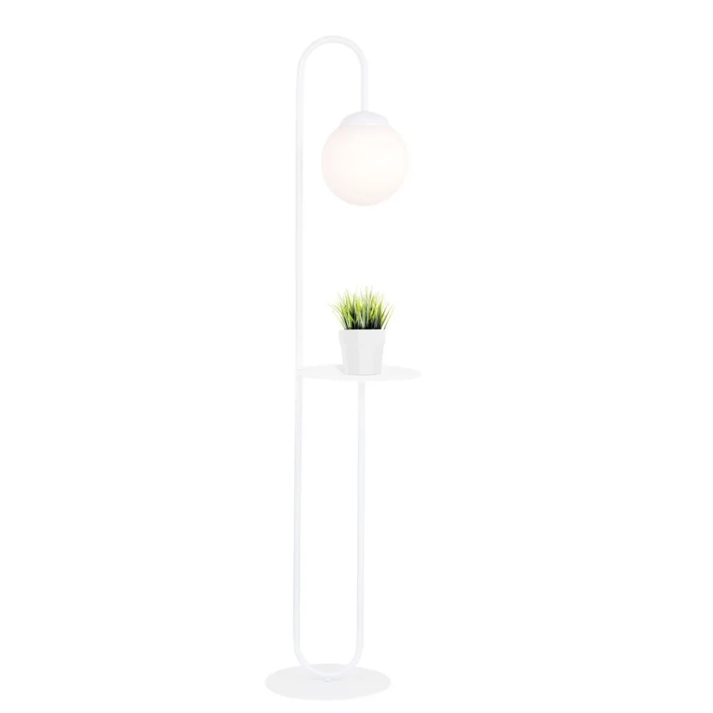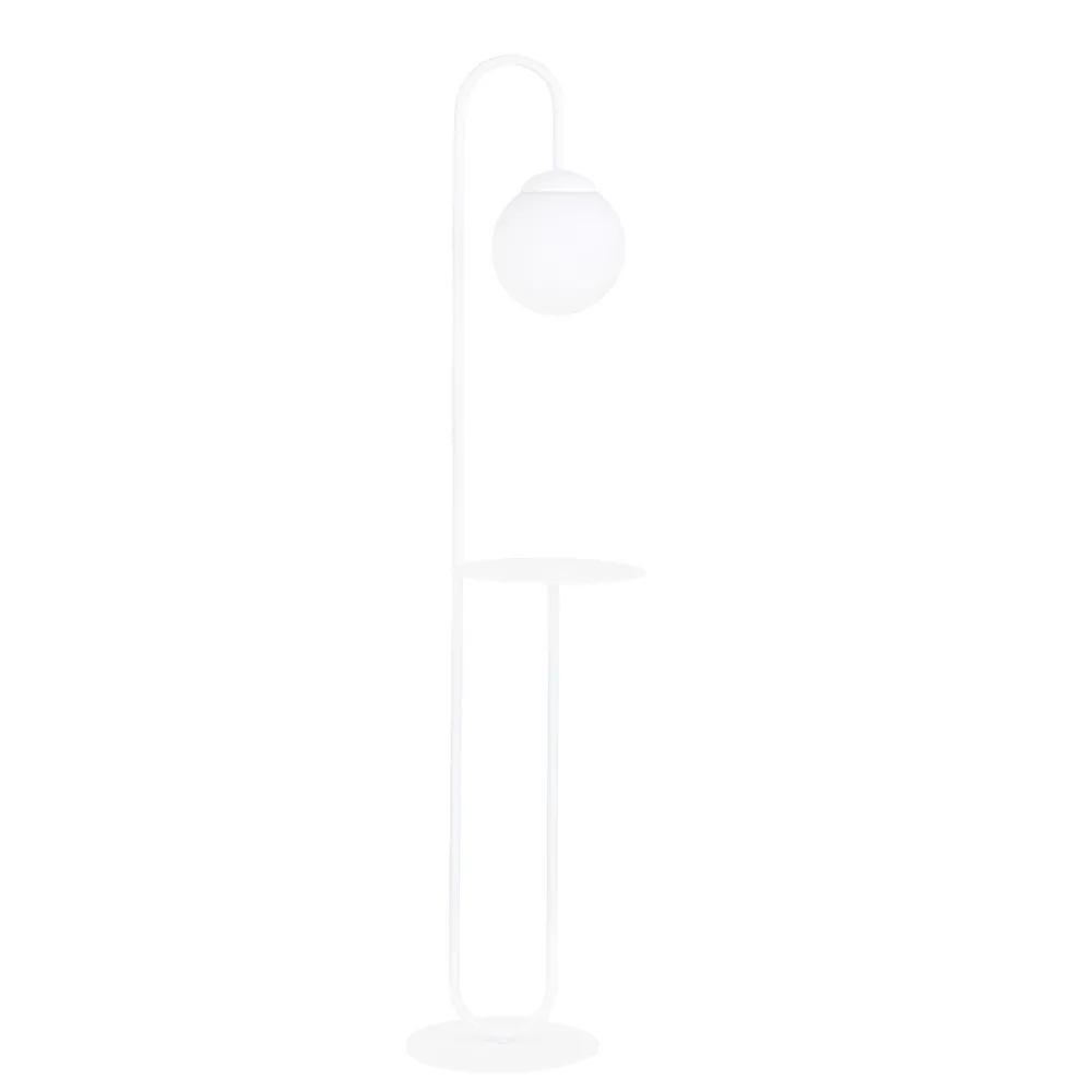 Elegante Stehlampe mit Ablage und dekorativem Kugelschirm aus Glas