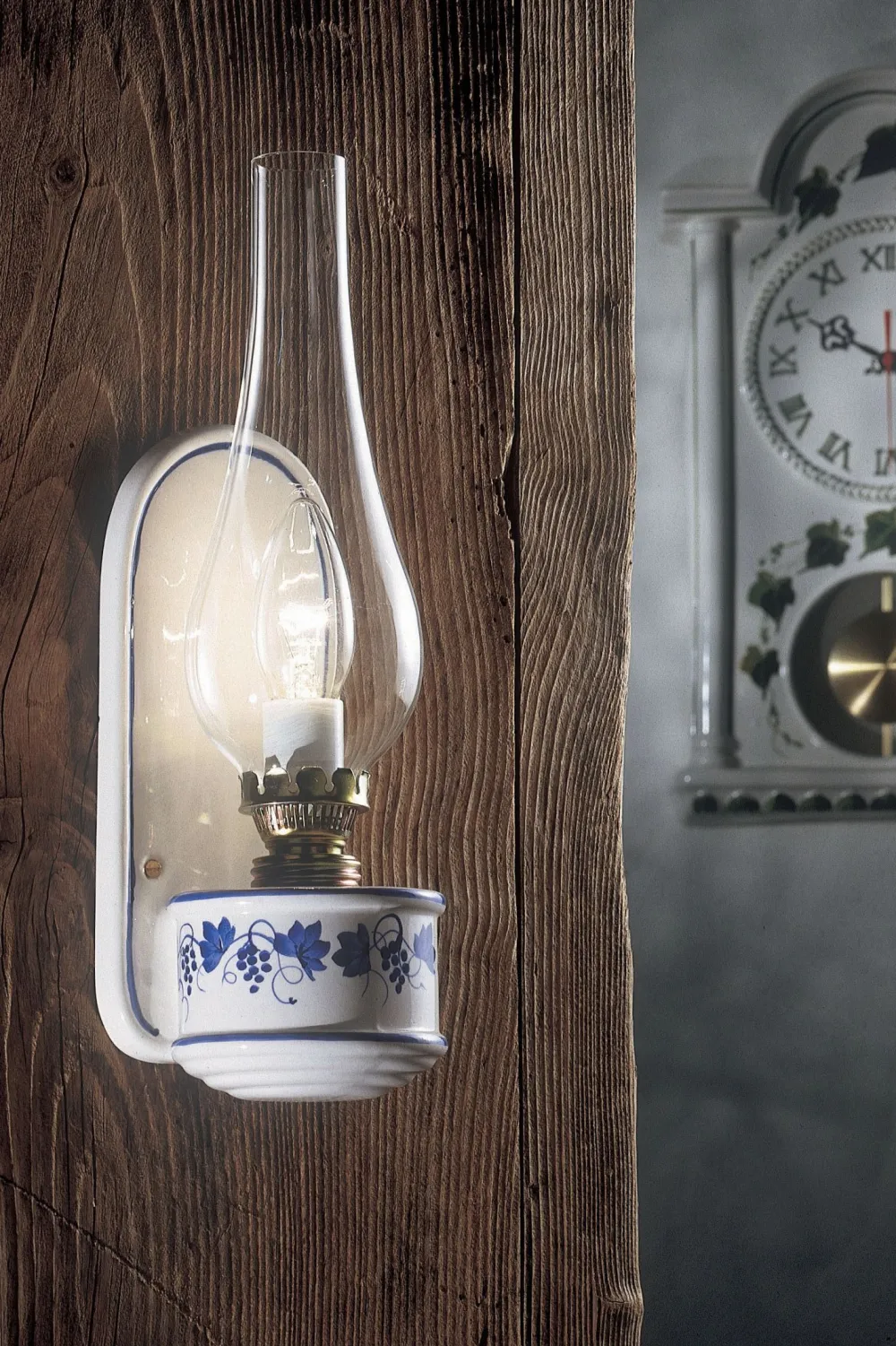 Edle Wandleuchte aus Keramik und Glas im Stil einer antiken Petroleumlampe